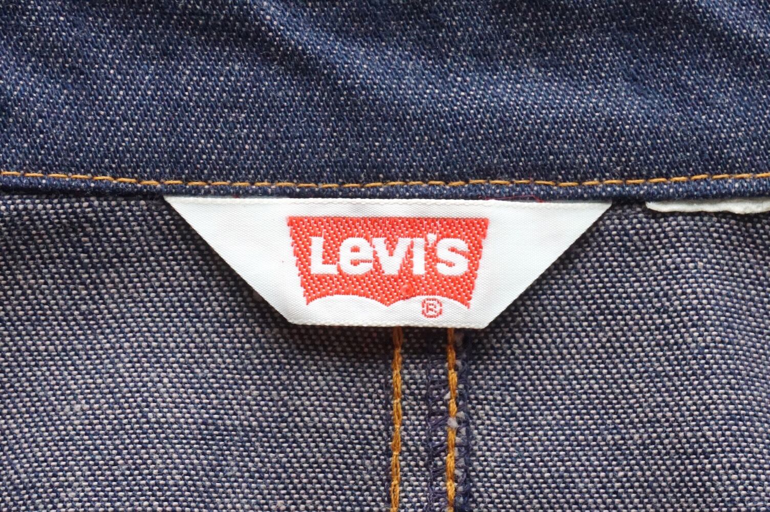 1970's [Levi's] バットダイ ロングデニムジャケット 3ポケット ネイビー 実寸(L〜XL程度) オレンジタブ リーバイス ヴィンテージ