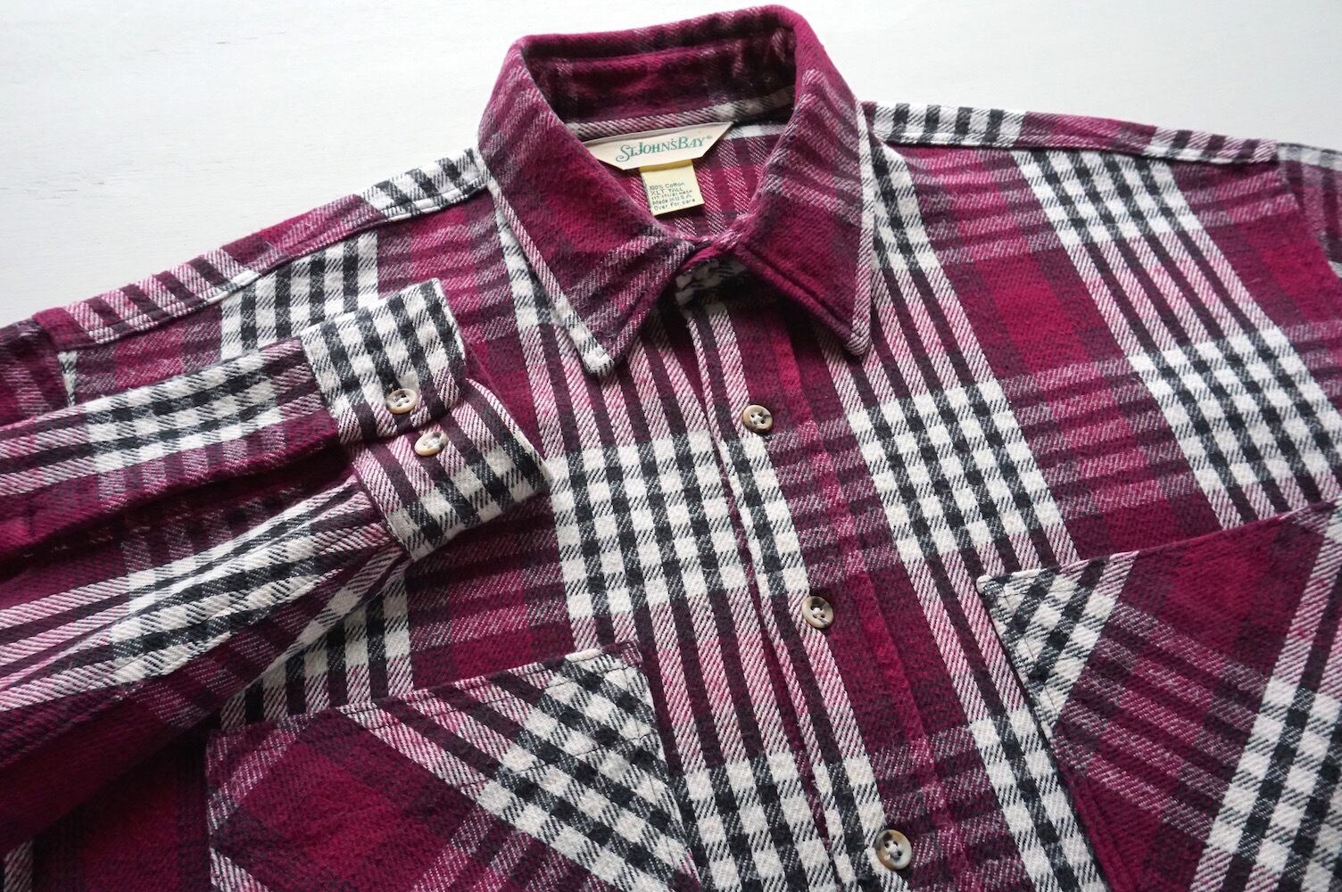 1980's〜90's USA製 [ST. JOHN'S BAY] ヘヴィーネルシャツ 100%コットン ワイン系チェック 表記(XL) ヴィンテージ