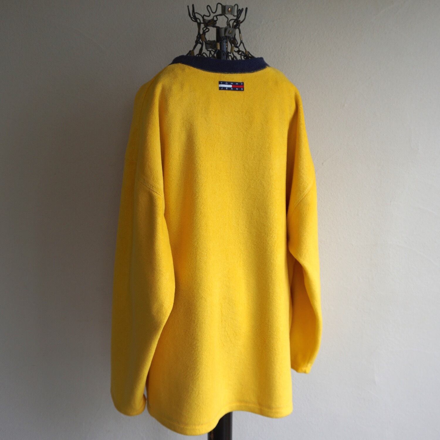 1990's [TOMMY JEANS] クルーネック フリースプルオーバー イエロー×ネイビー 表記(XL) TOMMY HILFIGER トミーヒルフィガージーンズ ヴィンテージ