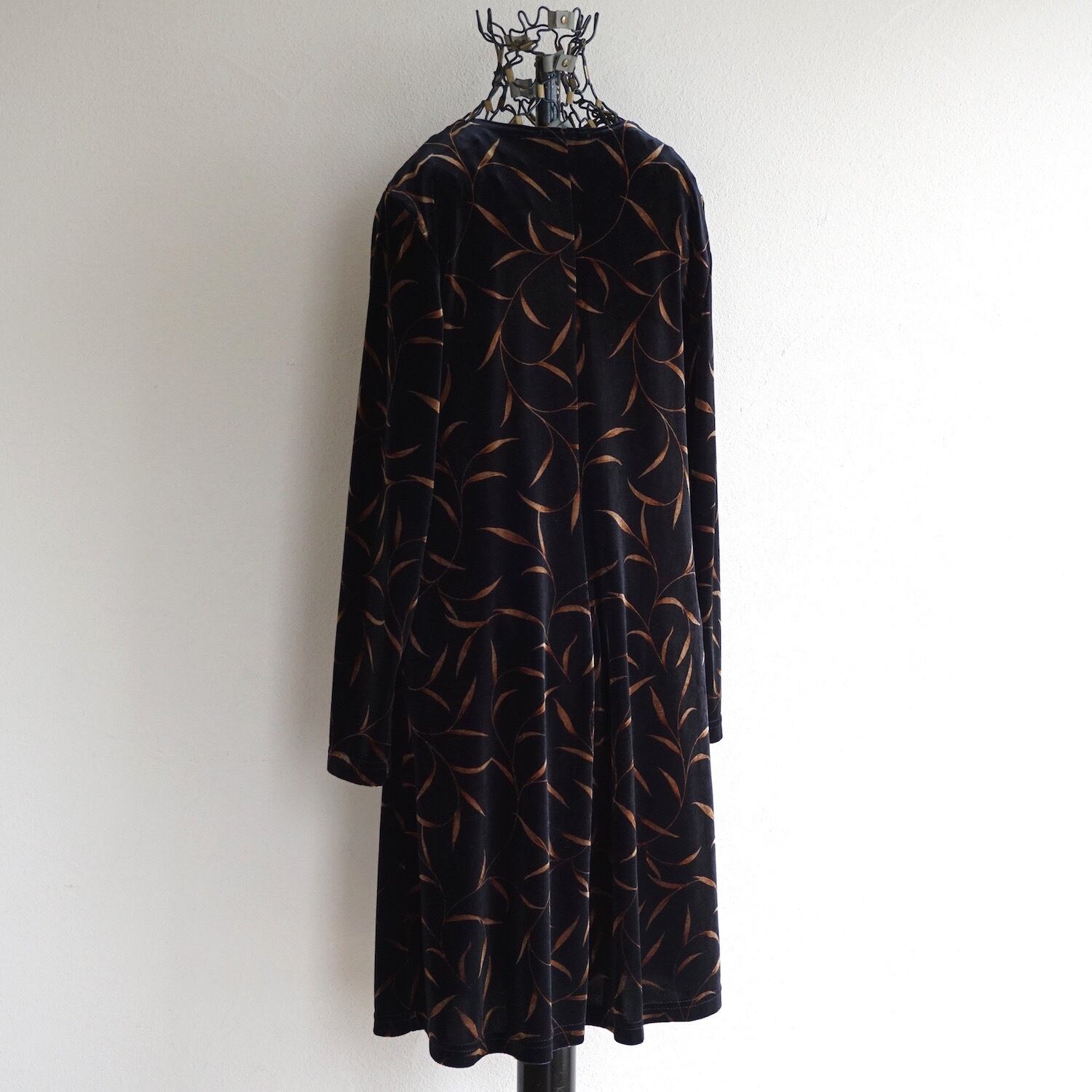 エレガントなボタニカルプリントの、L/Sベロアミディドレス。