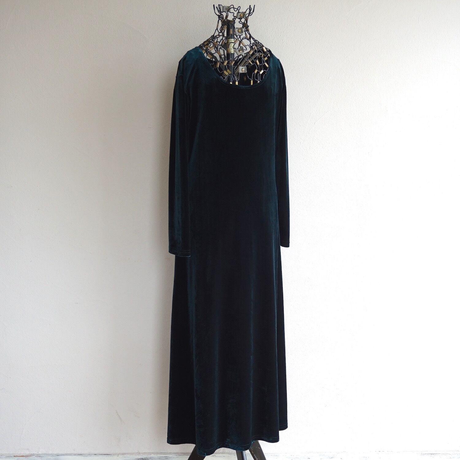 1990's USA製 [Annie Claire] L/S ベロアロングドレス ダークグリーン 表記(women's S) ヴィンテージ