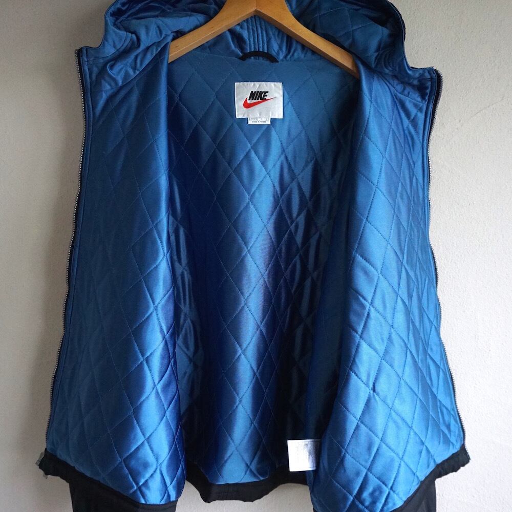 1990's [NIKE] フルジップ パディングパーカ 中綿キルティング ブラック×ブルー 表記(women's L) 白タグ ナイキ ヴィンテージ