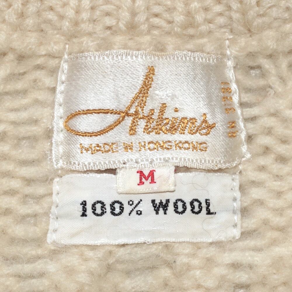 1970's [Atkins] アランニットカーディガン アイボリーホワイト 表記(women's M) フィッシャーマンセーター ヴィンテージ