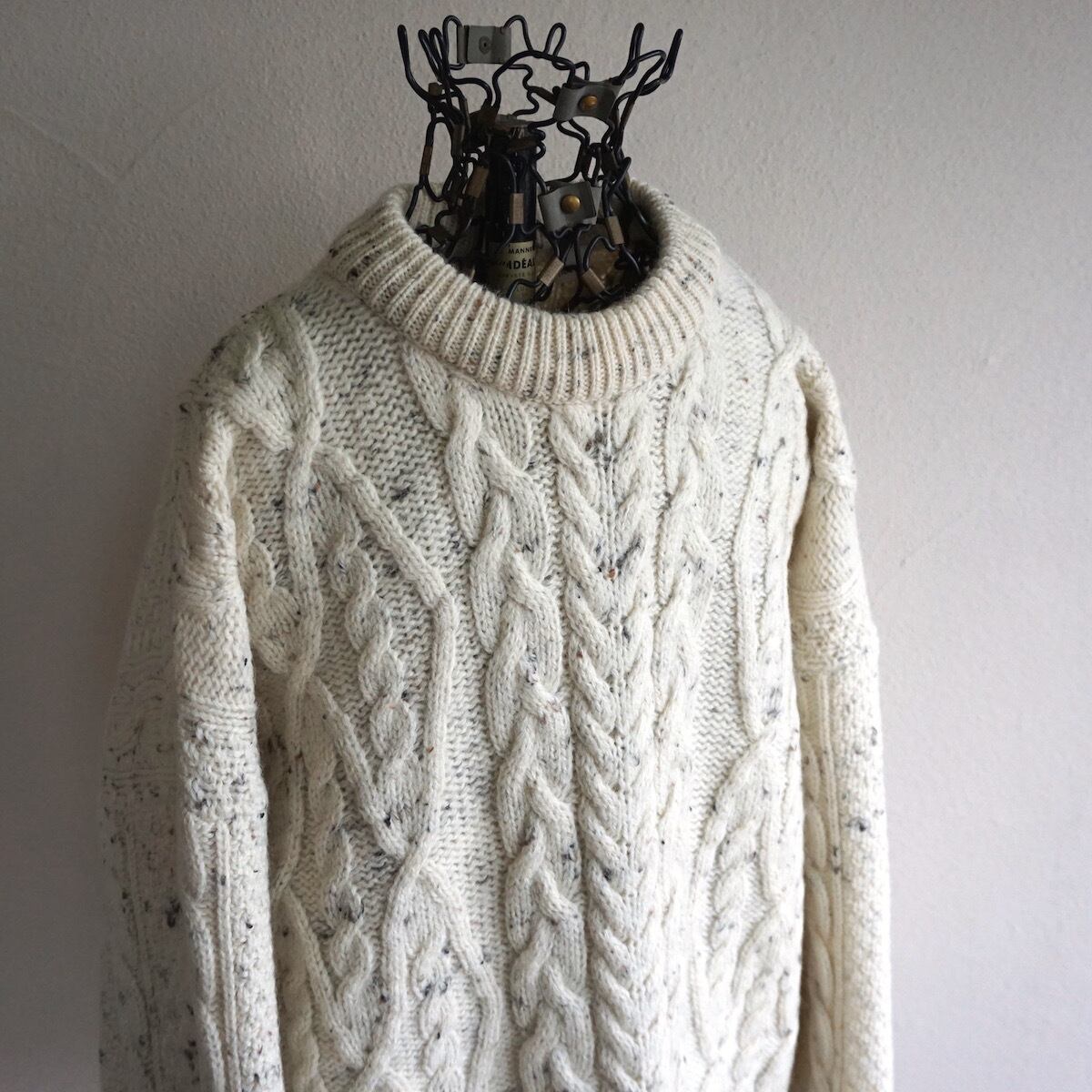 1990's アランニットセーター WOOLMARK オフホワイト×ネップ 実寸(L程度) フィッシャーマンセーター ケーブル編み ヴィンテージ