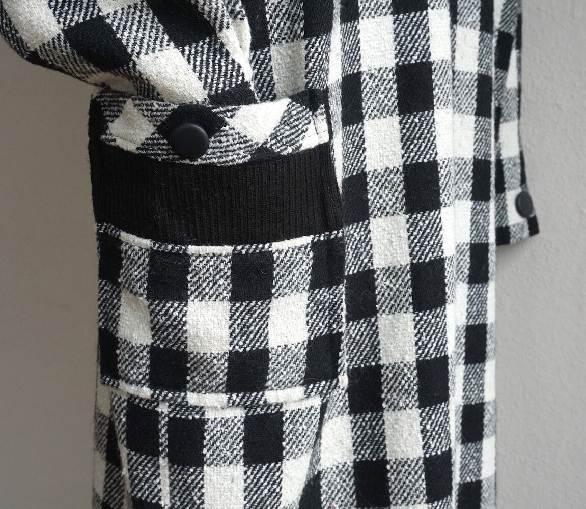 黒白モノトーンバッファローチェックの、L/Sミディドレス。