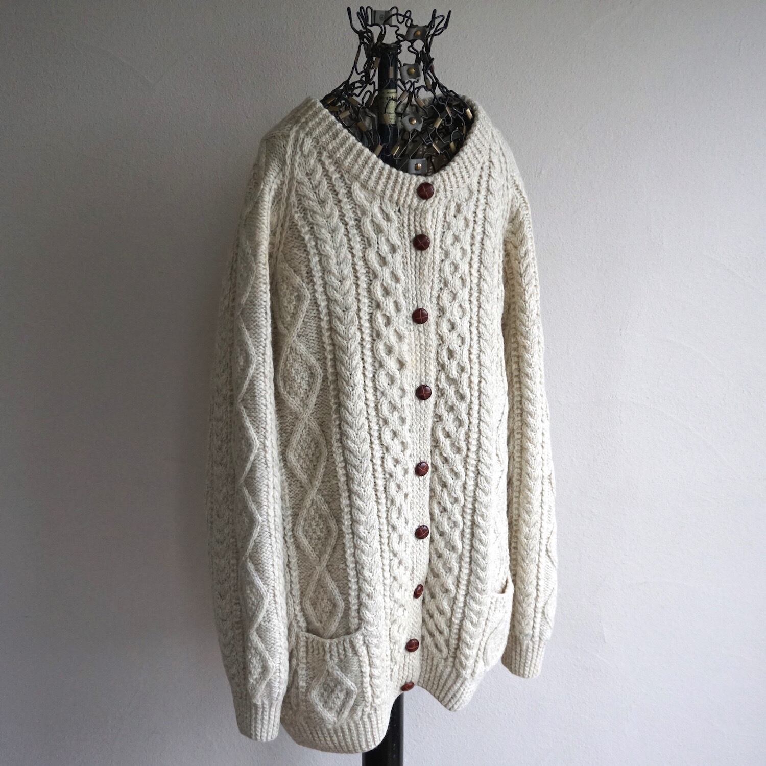 1990's [BLARNEY] ロング&ビッグシルエット アランニットカーディガン オートミール 実寸(women's XL〜程度) フィッシャーマンセーター ケーブル編み アイルランド