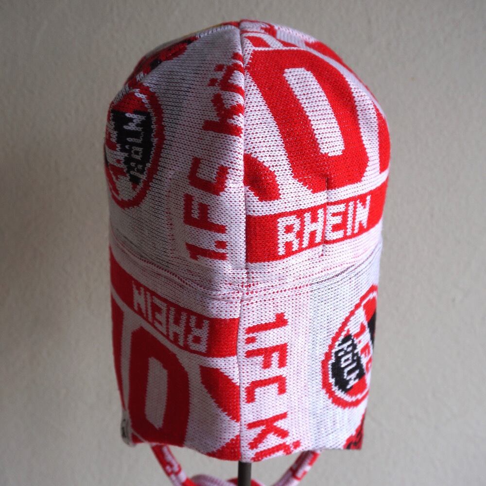 ヨーロッパのFCスカーフ(マフラー)をメイクオーバーした、ニットトラッパーキャップ。