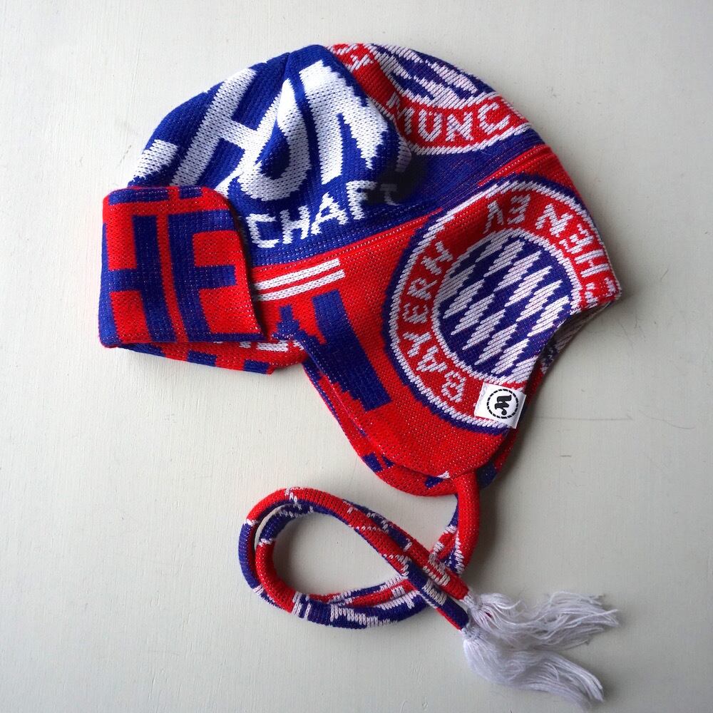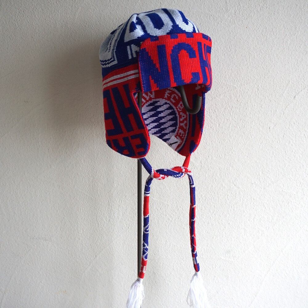 ヨーロッパのFCスカーフ(マフラー)をメイクオーバーした、ニットトラッパーキャップ。