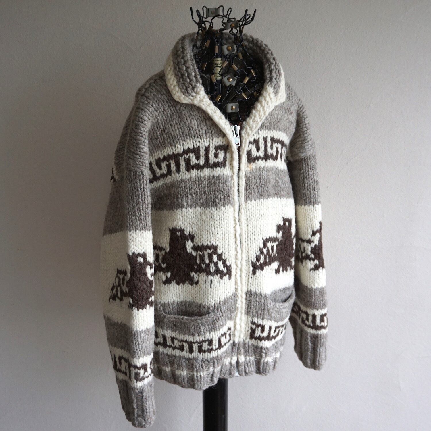 1990's CANADA製 [CANADIAN SWEATER COMPANY] サンダーバード柄 カウチンセーター フルジップ 実寸(M〜L程度) カナディアンセーターカンパニー ヴィンテージ