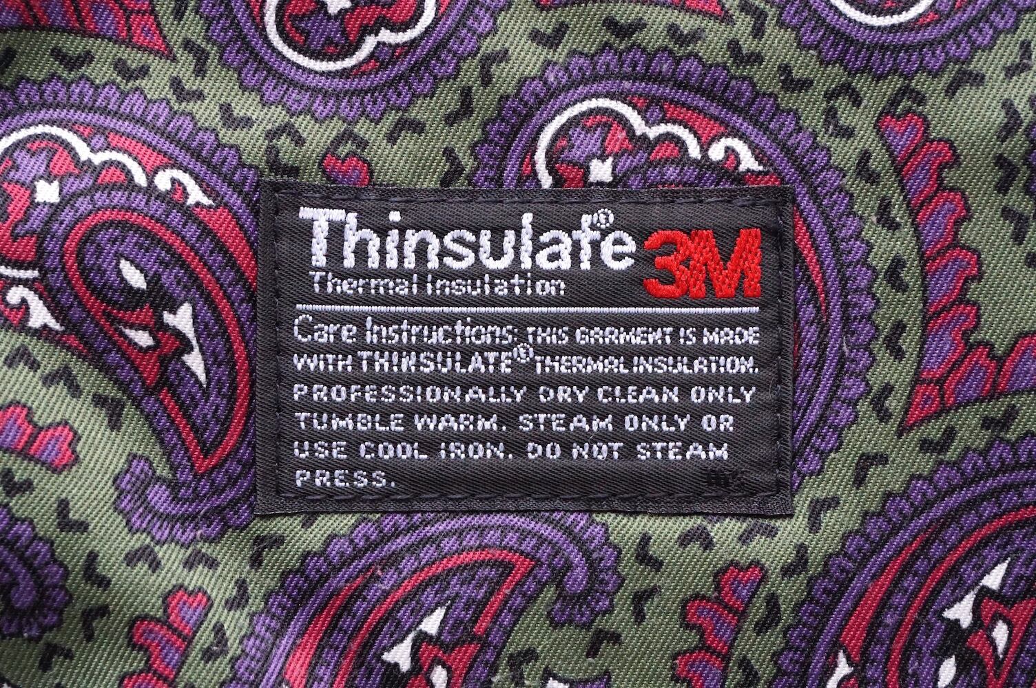 "Thinsulate"中綿のペイズリー柄ライナーは、ジッパー着脱式で、幅広いシーズンで着用可能。
