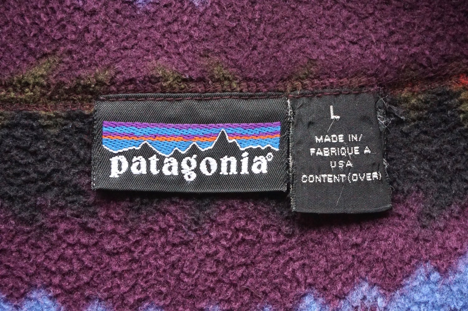 '94 USA製 [patagonia] "ライトウェイト・シンチラ・セーター" サカジャウィア柄 ハーフジップフリースプルオーバー パープル系ネイティブパターン 総柄 表記(L) パタゴニア 25225 ヴィンテージ 1990's レア