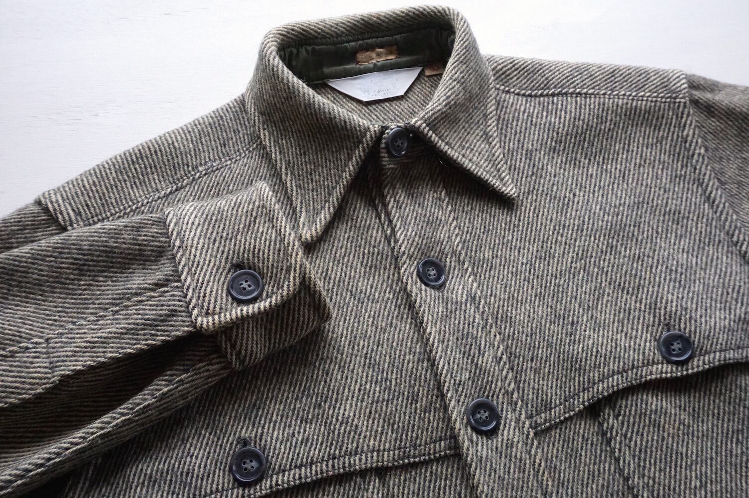 【コンディション】USED感・襟/袖カフ周り/ボディに薄シミ・右裾ポケット付近に小キズ・右肩に目立たない程度の小リペアはありますが、その他目立つダメージはありません。