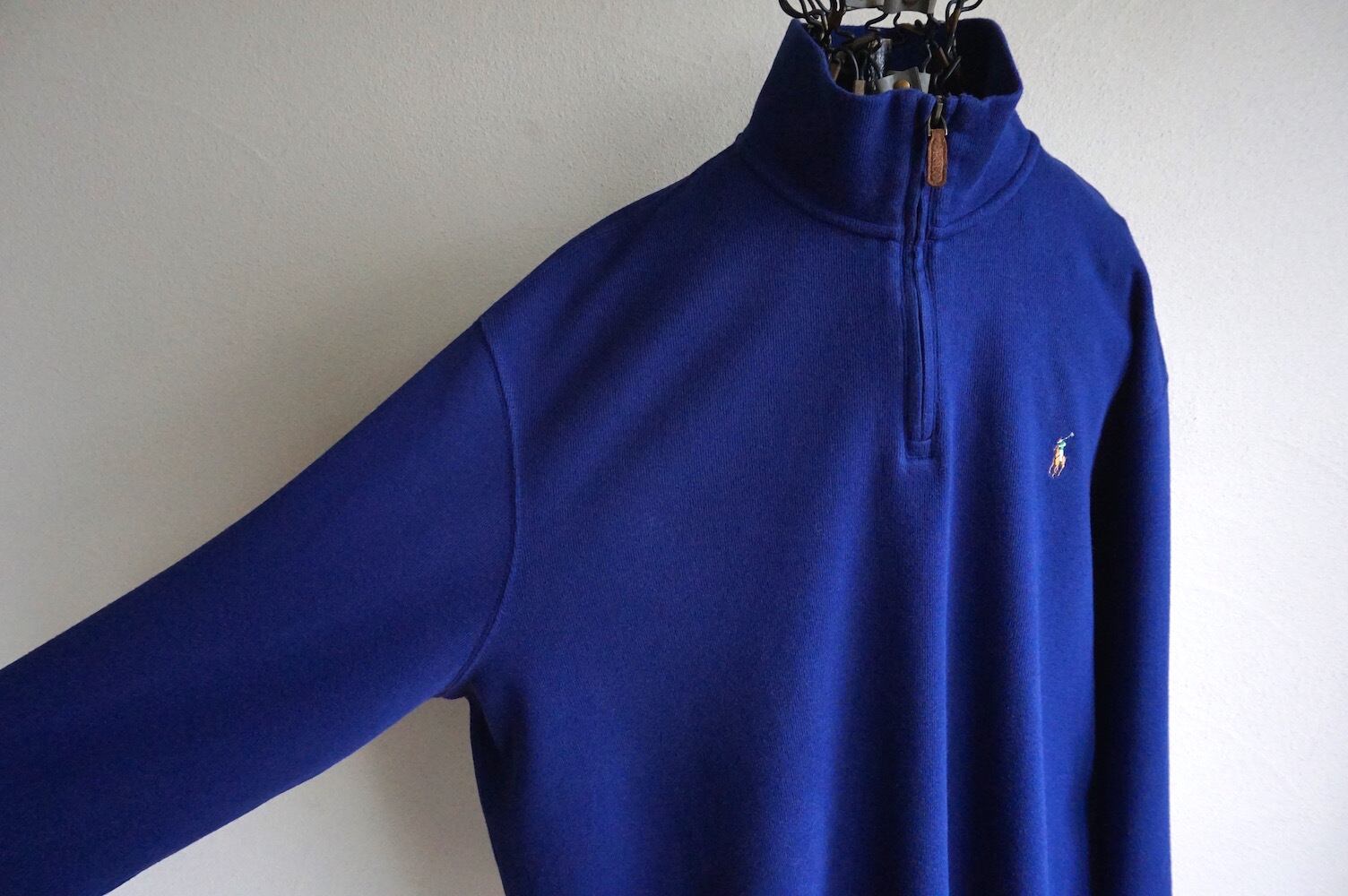 [POLO RALPH LAUREN] "ESTATE RIB" 100%コットン 1/2ジップ ニットプルオーバー ブルー 表記(XL) ラルフローレン