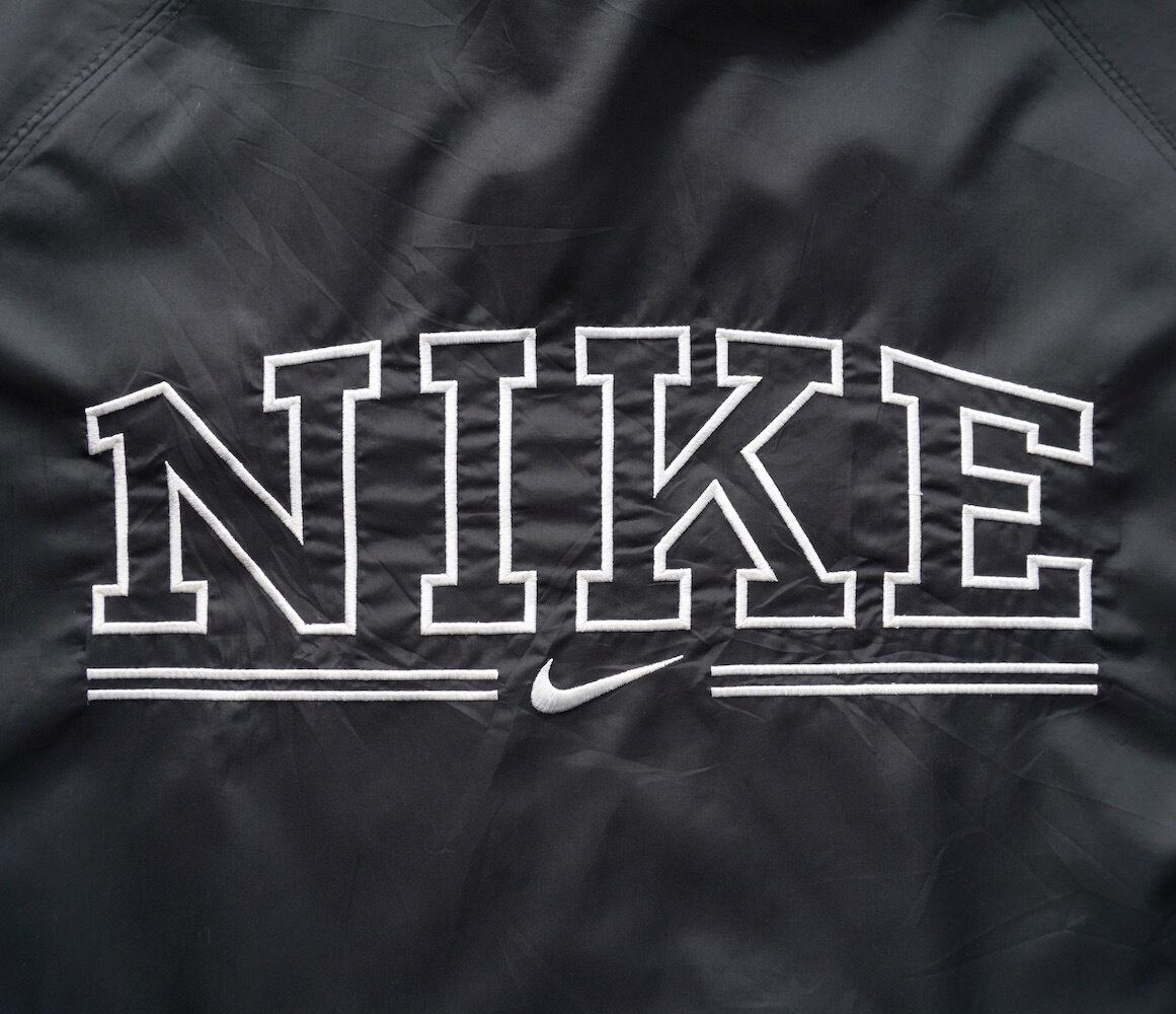 1990's〜2000's [NIKE] 肩/袖ライン切替&カマボコNIKE刺繍 ナイロントラックジャケット ブラック×ホワイト 表記(women's M) ウィンドブレーカー ナイキ ヴィンテージ