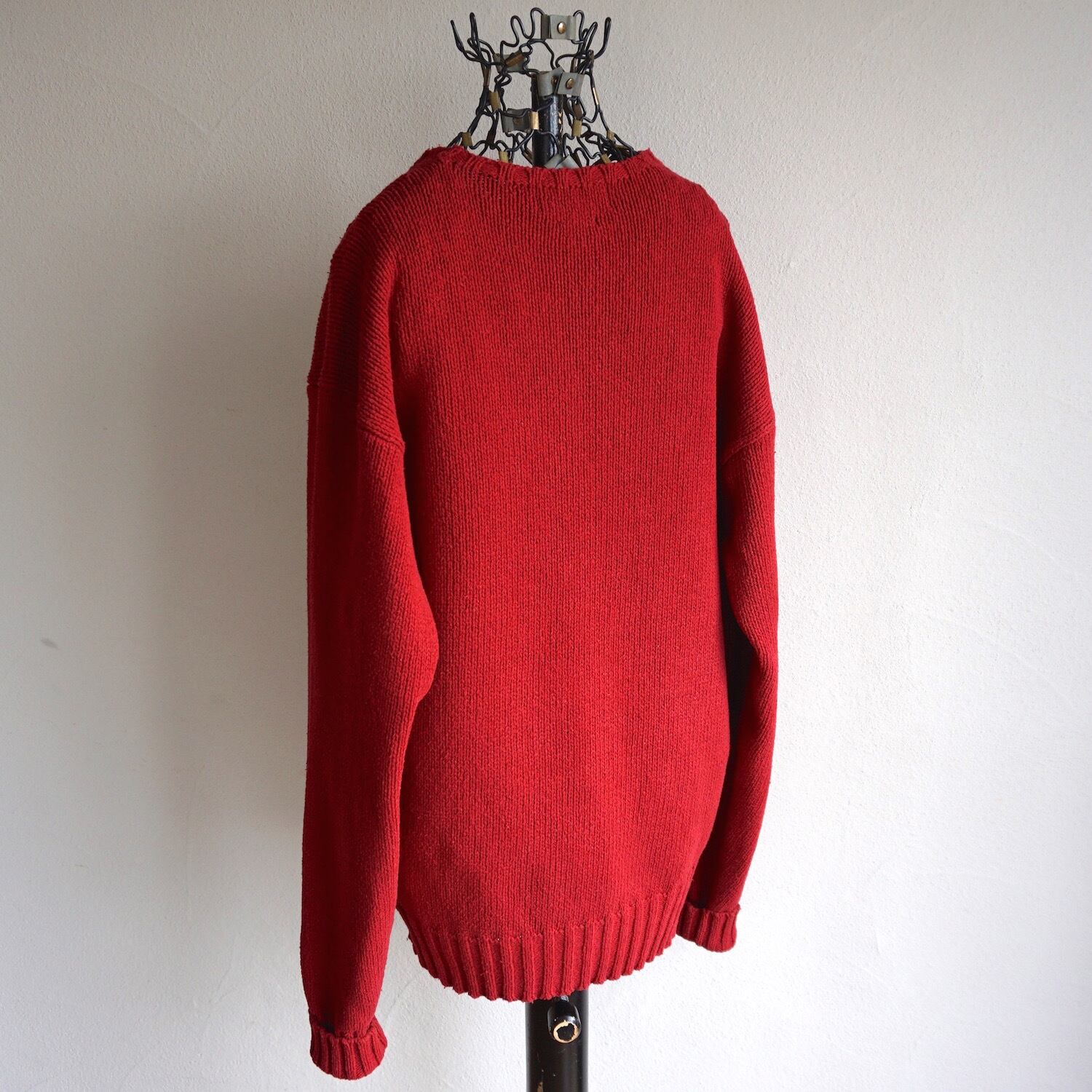 1990's [Polo by Ralph Lauren] 100%コットン ミドルゲージニットセーター クルーネック ディープレッド 表記(M) ラルフローレン ヴィンテージ