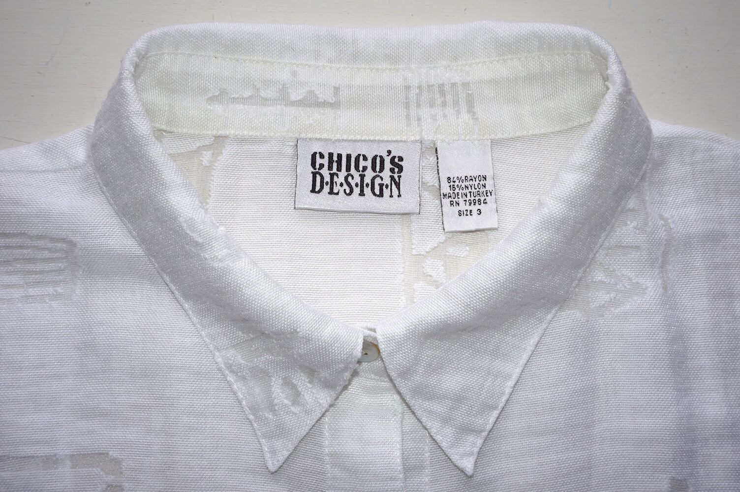 1990's〜 [CHICO'S DESIGN] バーンアウト(透かし模様加工) デザインブラウス ホワイト 表記(3) シースルーシャツ ヴィンテージ