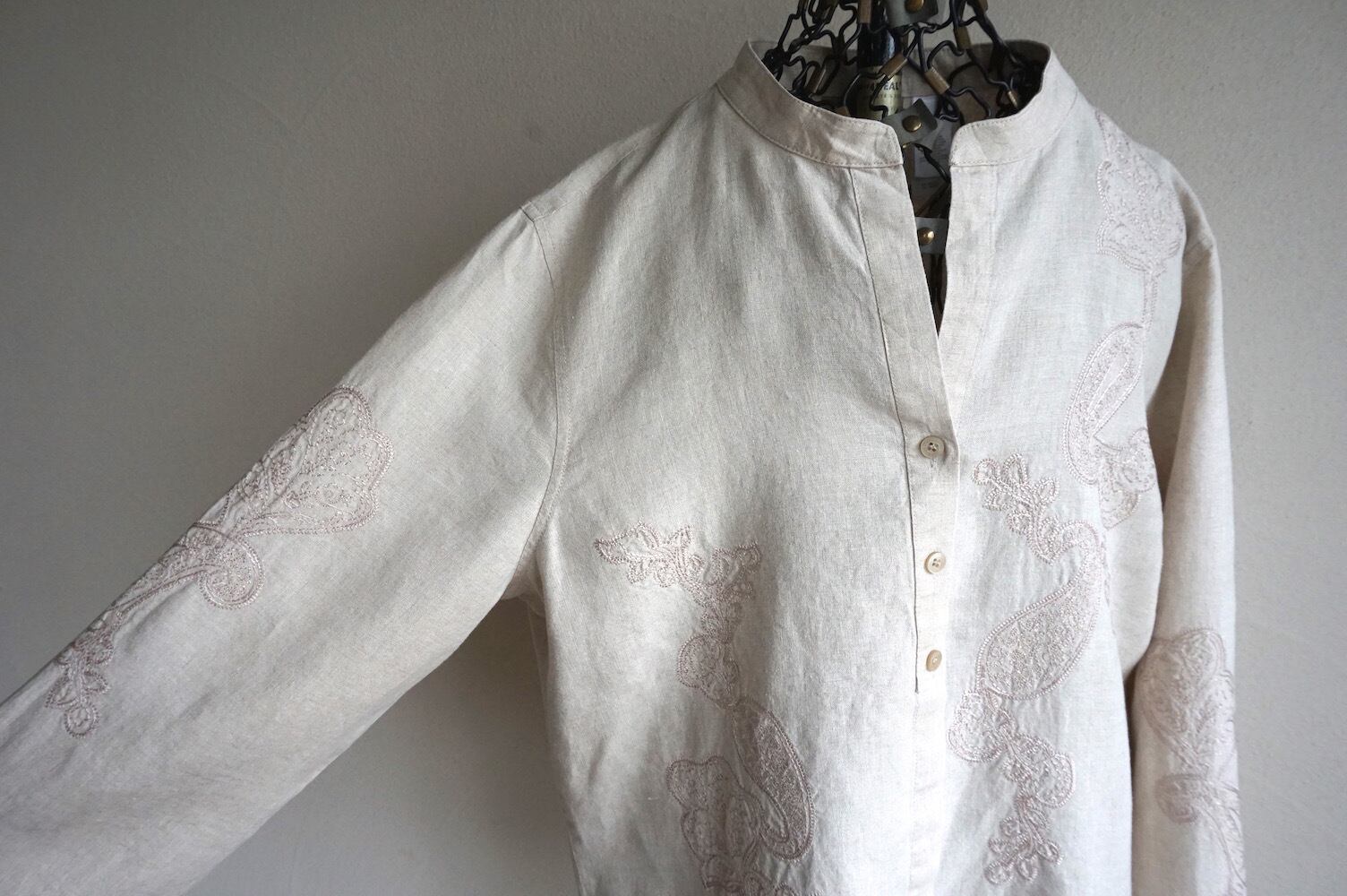 2000's [Liz claiborne] ペイズリー刺繍 100%リネン チュニックブラウス ライトベージュ 表記(women's L) エンブロイダリー リズ・クレイボーン