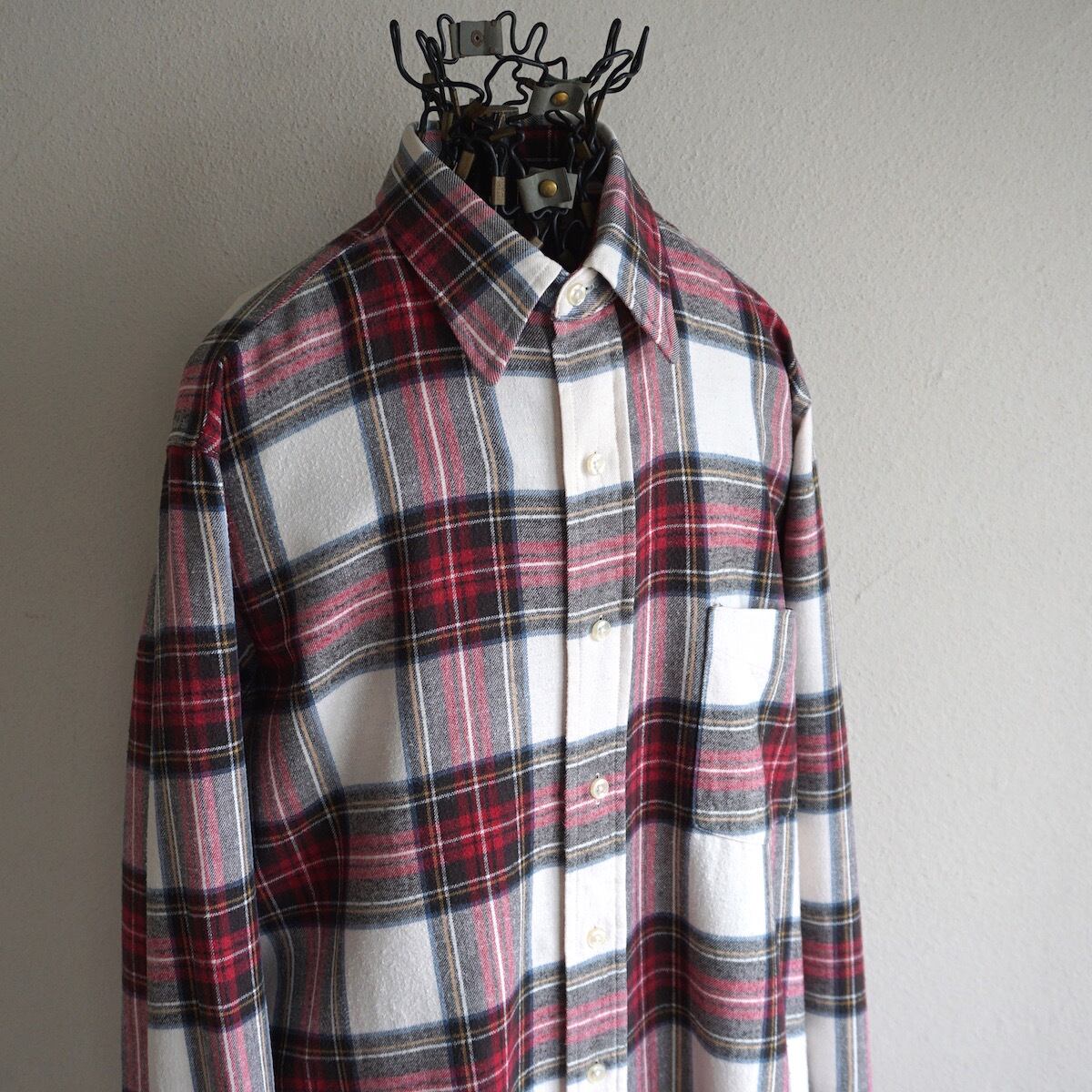 1980's USA製 [L.L.Bean] タータンチェック コットンフランネルシャツ ホワイト×レッド/ブラック 表記(SMALL) ヴィンテージ