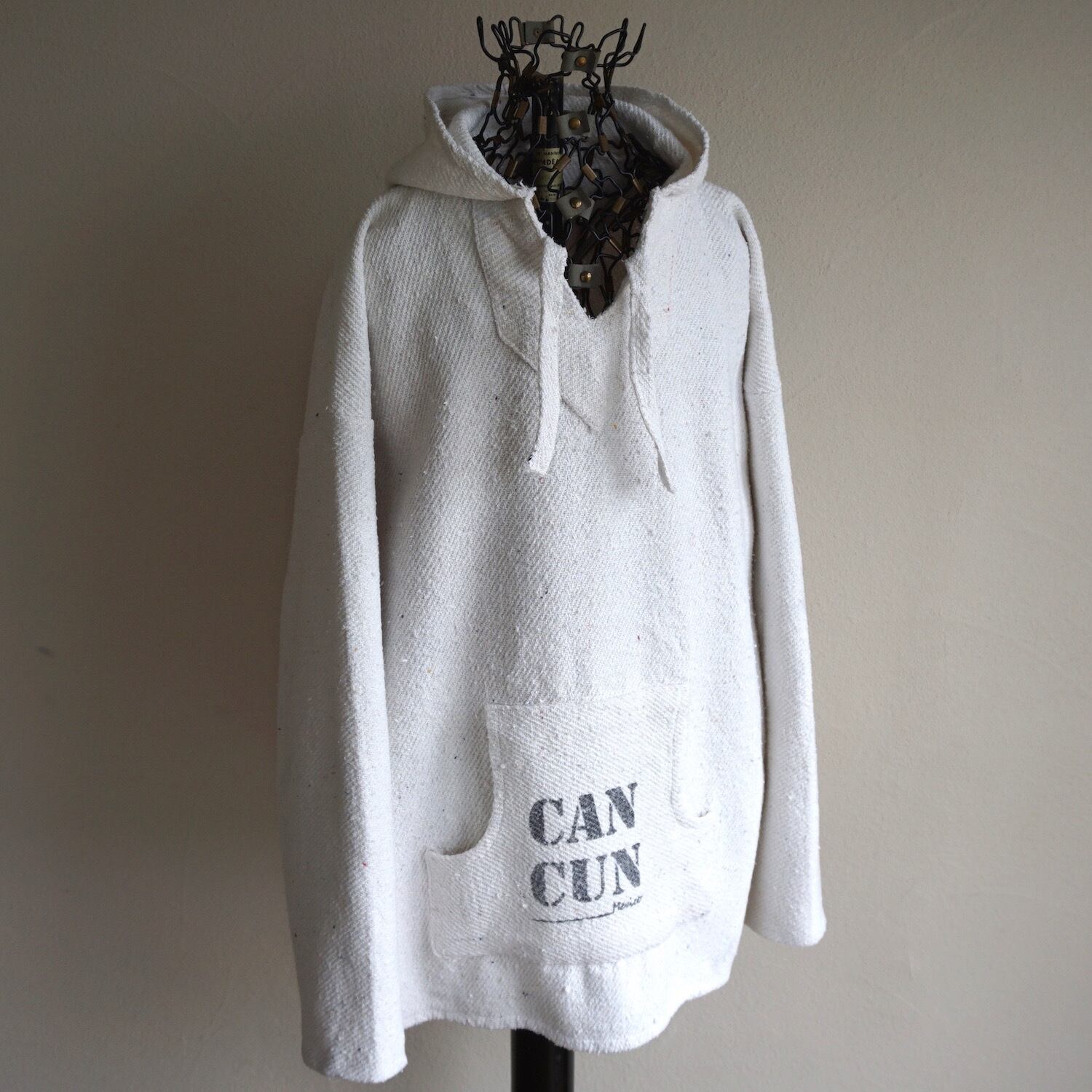 1990's〜 "アステカカレンダー"プリント メキシカンパーカ ホワイト 実寸(XL程度) CANCUN スーベニア 太陽の石 メキパー ヴィンテージ