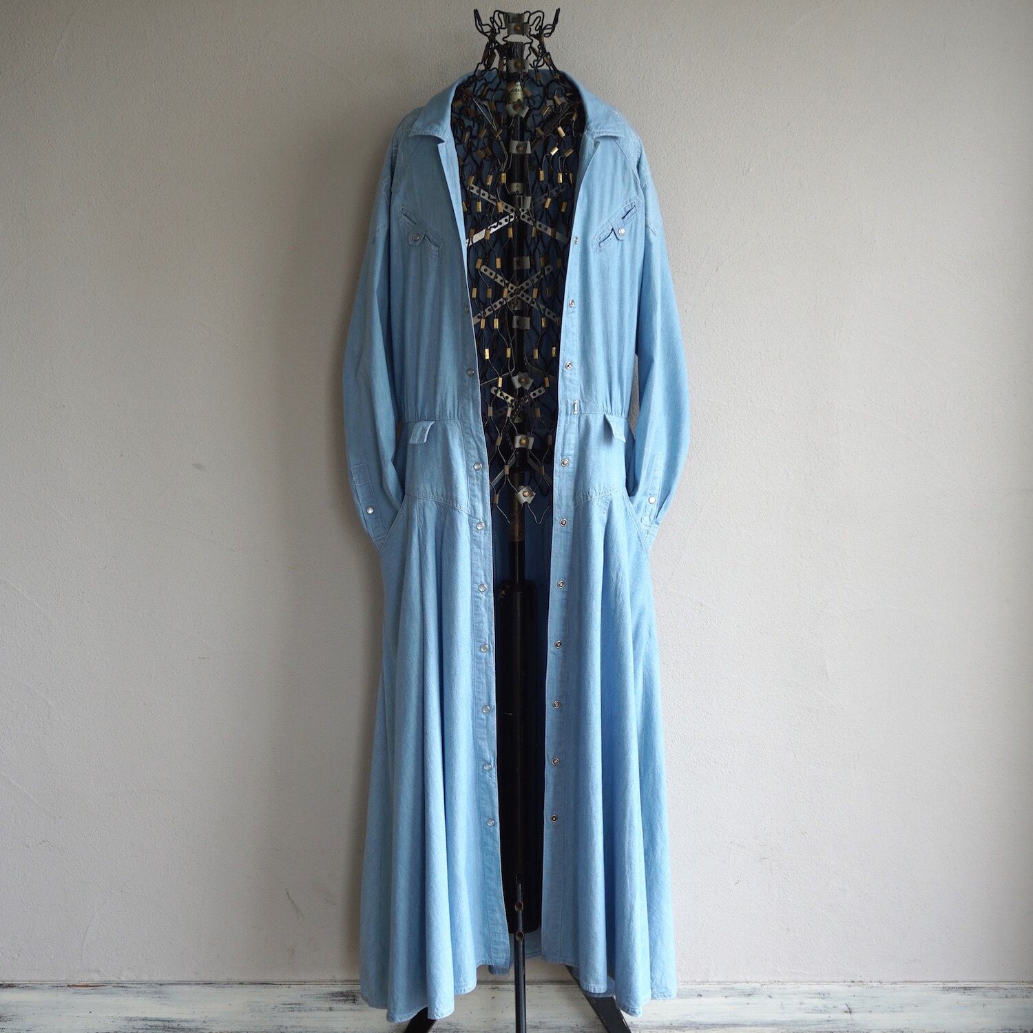 1990's [Liz claiborne] フローラル刺繍 L/S ウエスタンシャンブレードレス フルオープン ライトブルー 表記(women's 6) ワンピース リズ・クレイボーン ヴィンテージ | MAGNOLIA WEBSTORE