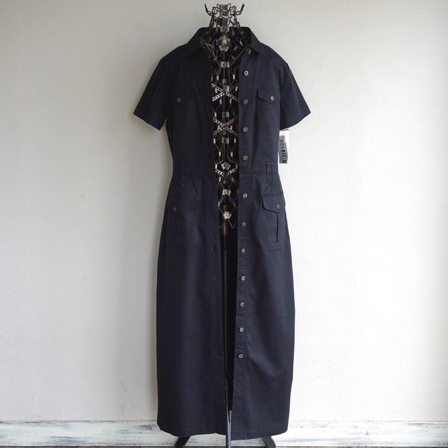 "DEAD STOCK" 1990's [ROBBIE BEE] サファリルック S/S マキシドレス ストレッチ ブラック 表記(10) ワンピース ヴィンテージ デッドストック | MAGNOLIA WEBSTORE