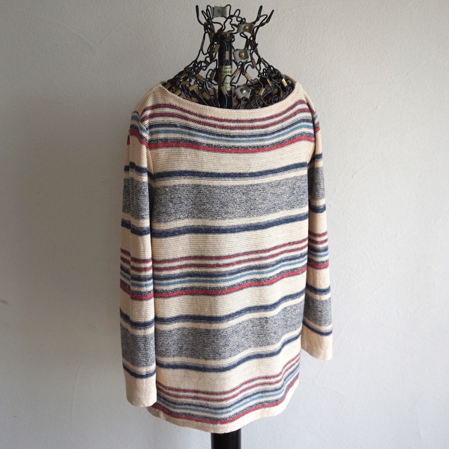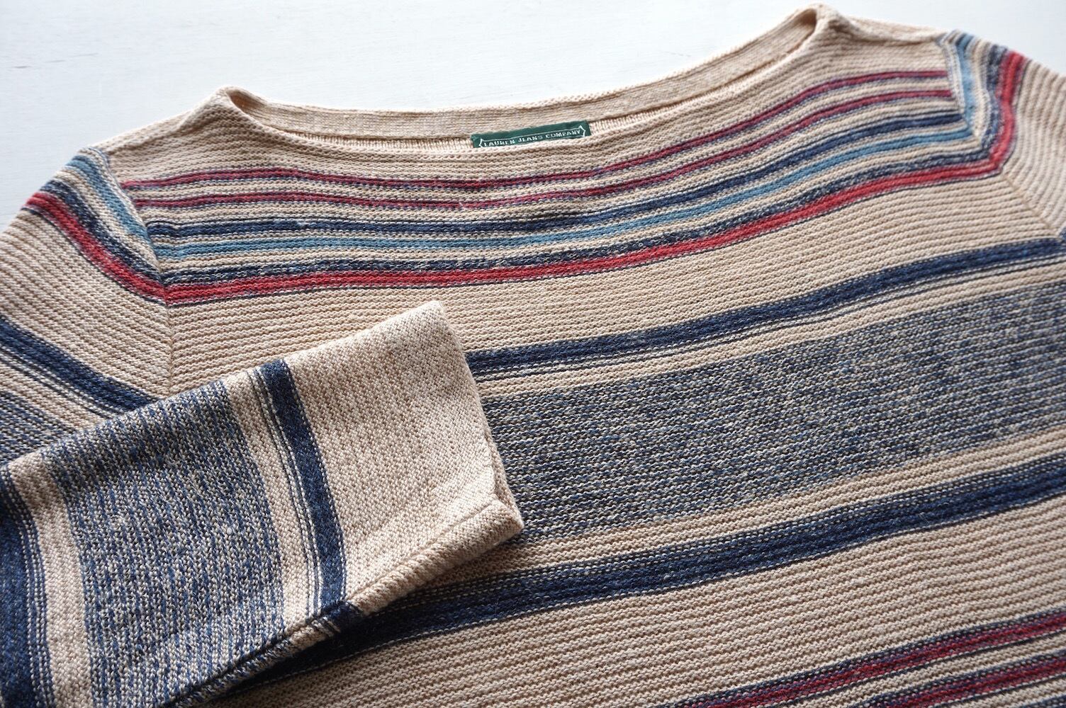 1990's〜2000's [LAUREN JEANS COMPANY] ネイティブ調ボーダー 100%リネン ニットカットソー ベージュ系 表記(women's L) Ralph Lauren ラルフローレン ヴィンテージ