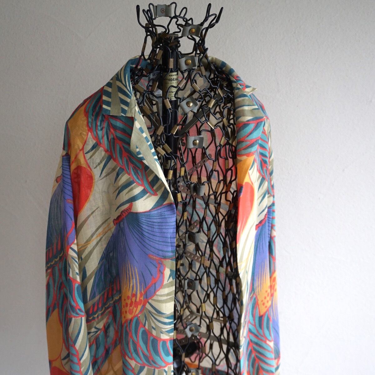 1970's [GEORGE YAZBEK For GORDON PETERS] ボタニカルプリント ジャケット型シアーブラウス フロントオープン 表記(women's M) シースルー ヴィンテージ