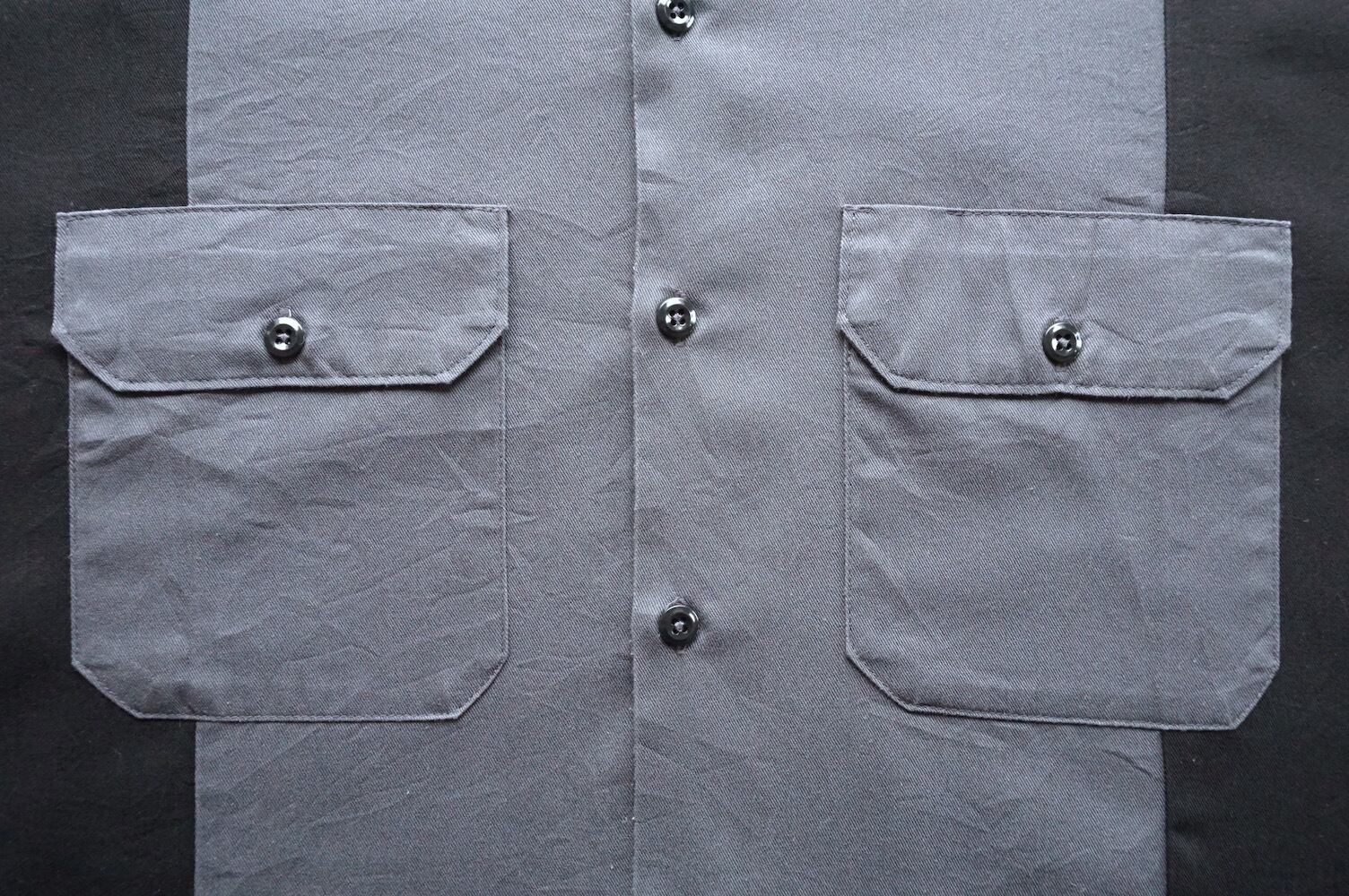 チャコール×ブラックのバイカラー切り替えがcoolな、S/Sワークシャツ。