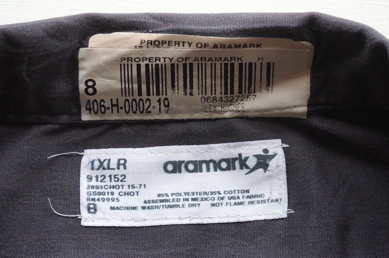 2000's [aramark] セーフティーオレンジ&リフレクターテープ S/S ワークシャツ チャコール 表記(XL)