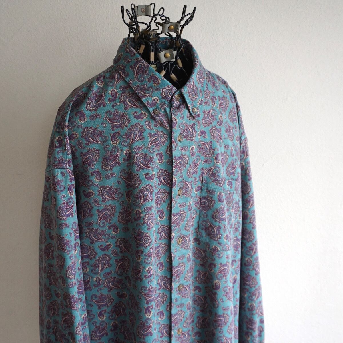1990's [CAMBRIDGE] ペイズリープリント L/S ボタンダウンコットンシャツ ティール×パープル系 表記(L) ヴィンテージ
