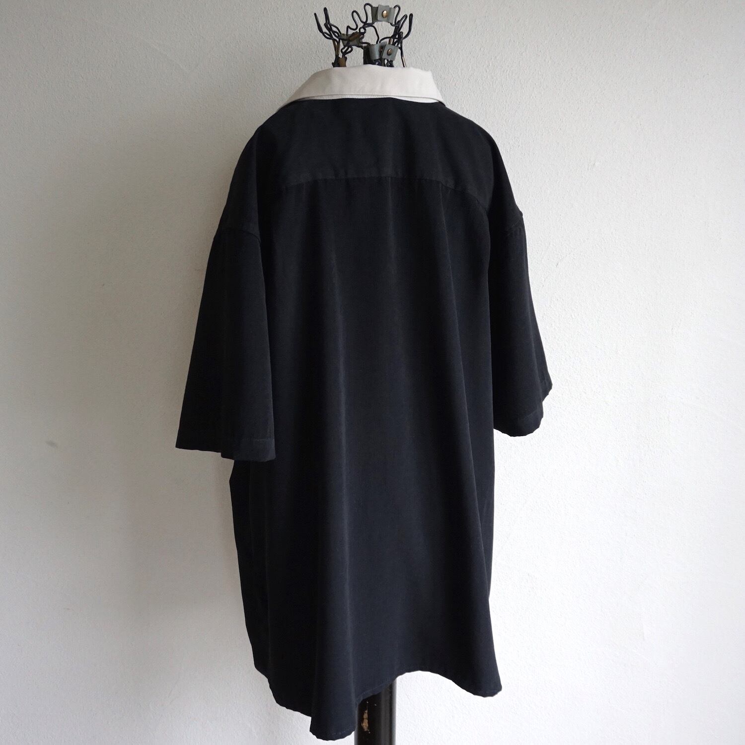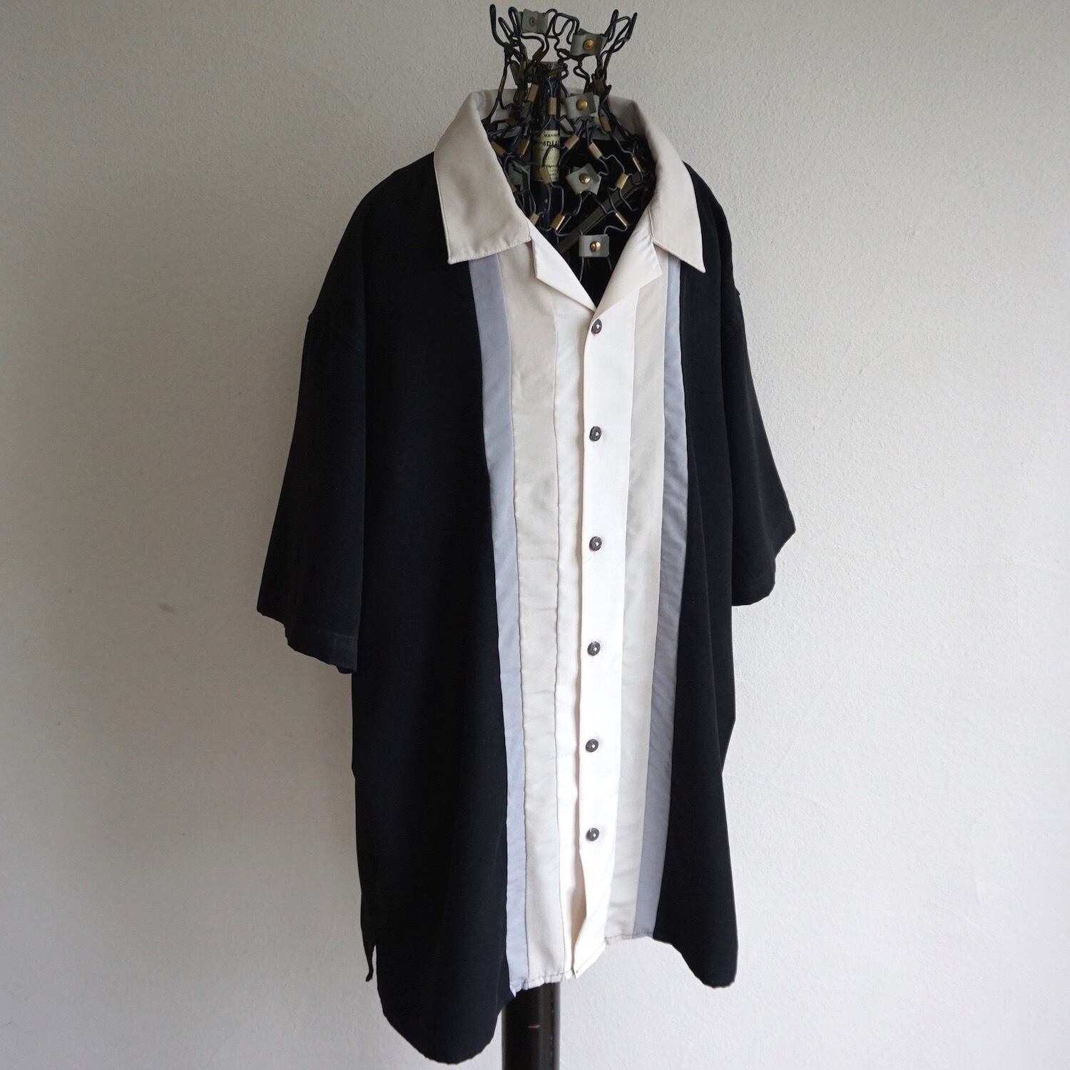 50'sルックなモノトーンのグラデーション切り替えデザインがcoolな、S/Sポリエステルシャツ。