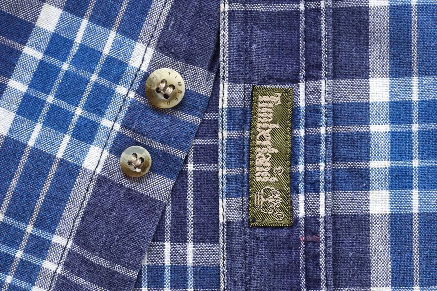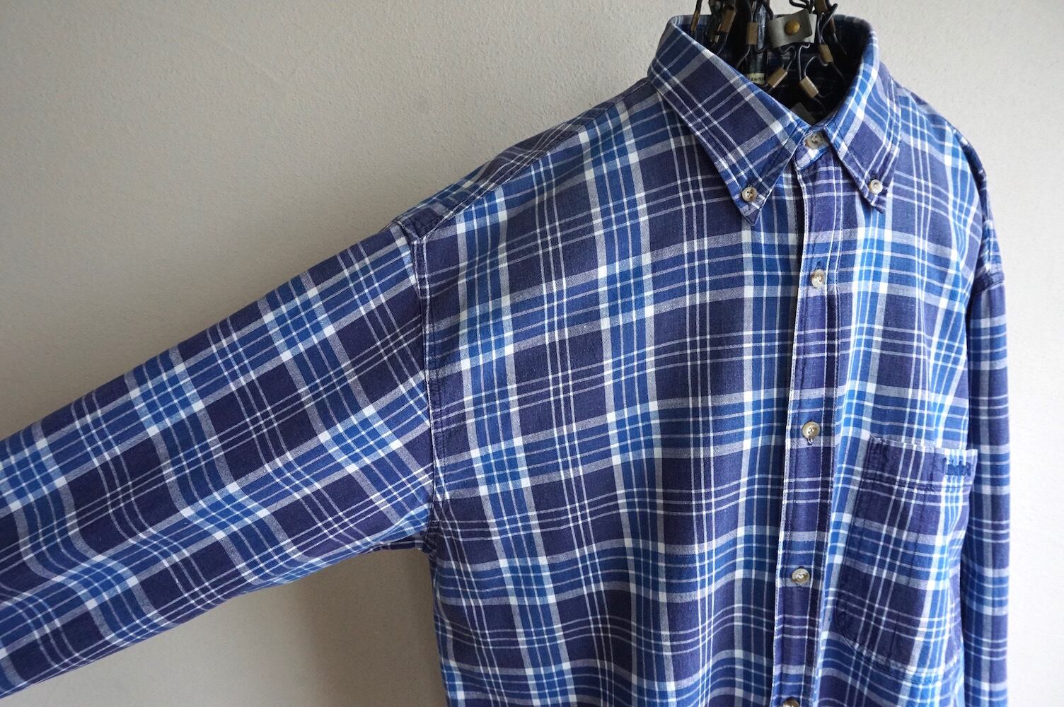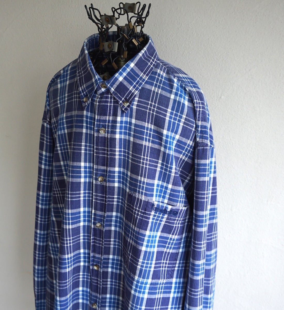 1990's [Timberland] 100%コットン L/S ボタンダウンシャツ ネイビー×ブルー×ホワイト チェック 表記(L) ティンバーランド オールド ヴィンテージ
