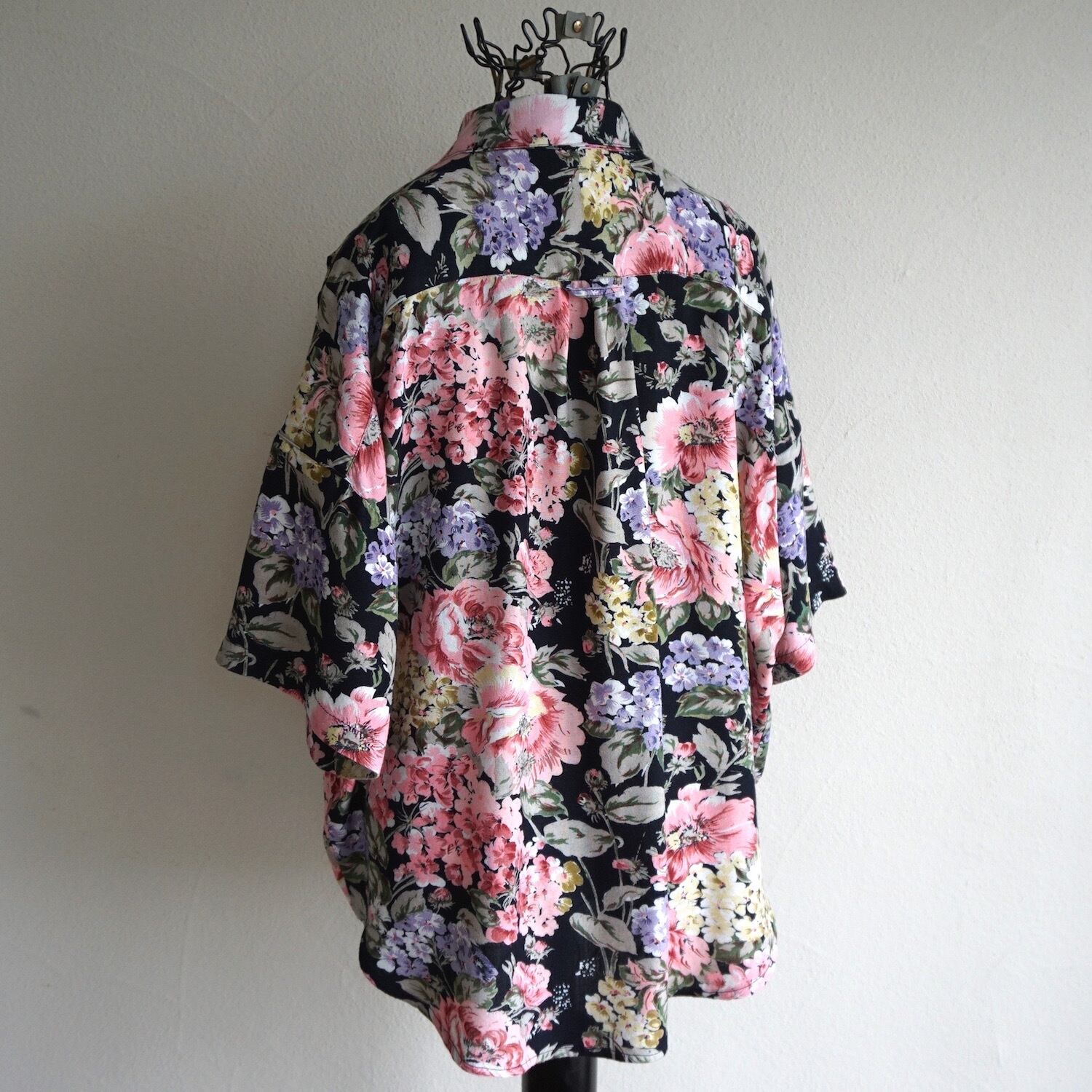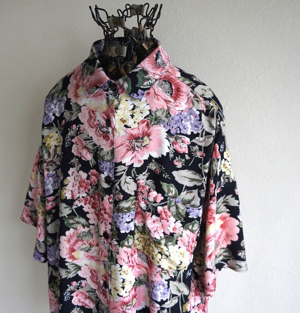 1980's〜 [ATLAST STUDIO] フローラルプリント ビッグシルエット S/S シャツブラウス ブラック 表記(women's M) 花柄 ヴィンテージ | MAGNOLIA WEBSTORE