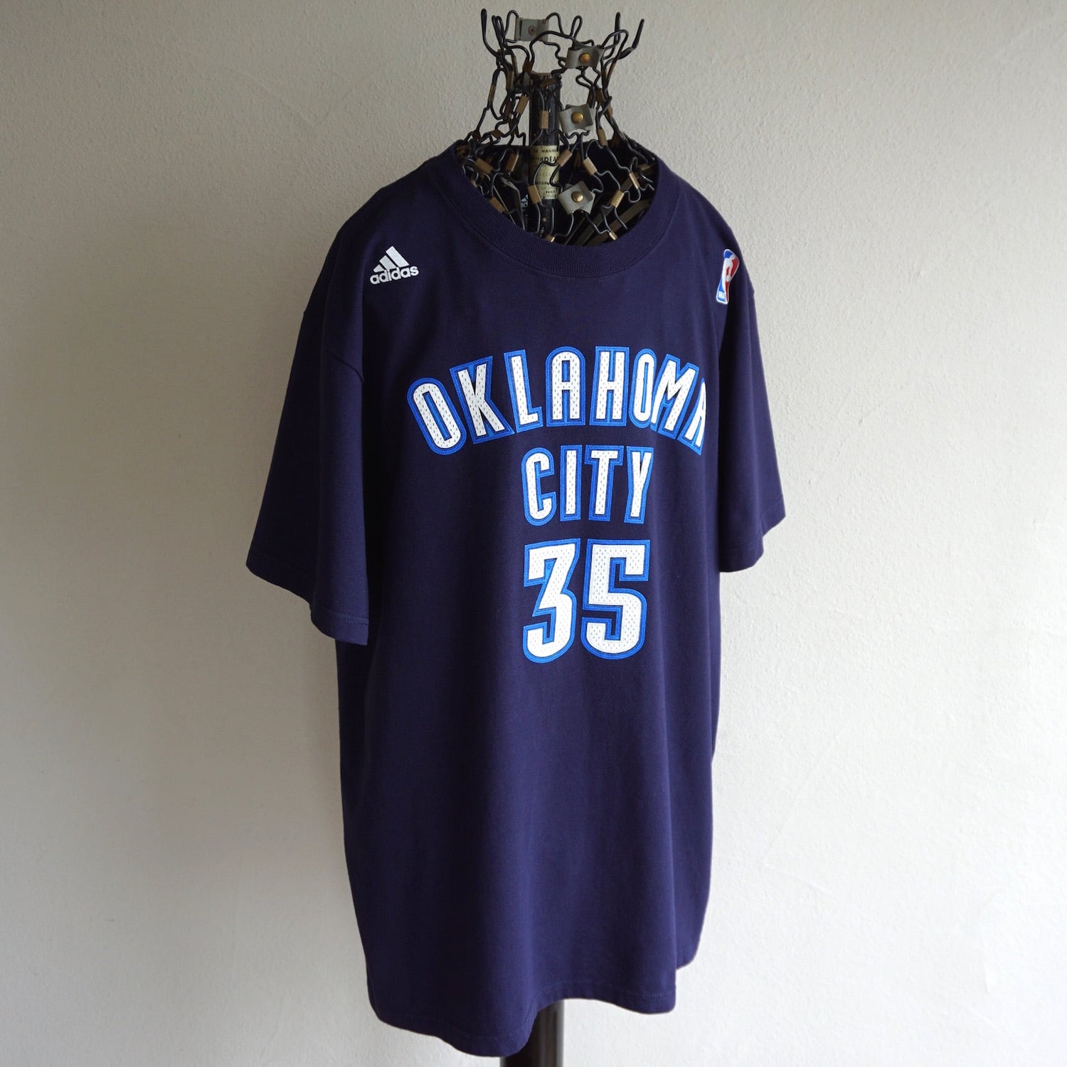 2000's〜 [adidas] NBA "OKLAHOMA CITY THUNDER" #35 DURANT ナンバリングレタード調プリント S/S Tシャツ ネイビー 表記(L) オクラホマシティ・サンダー ケビン・デュラント