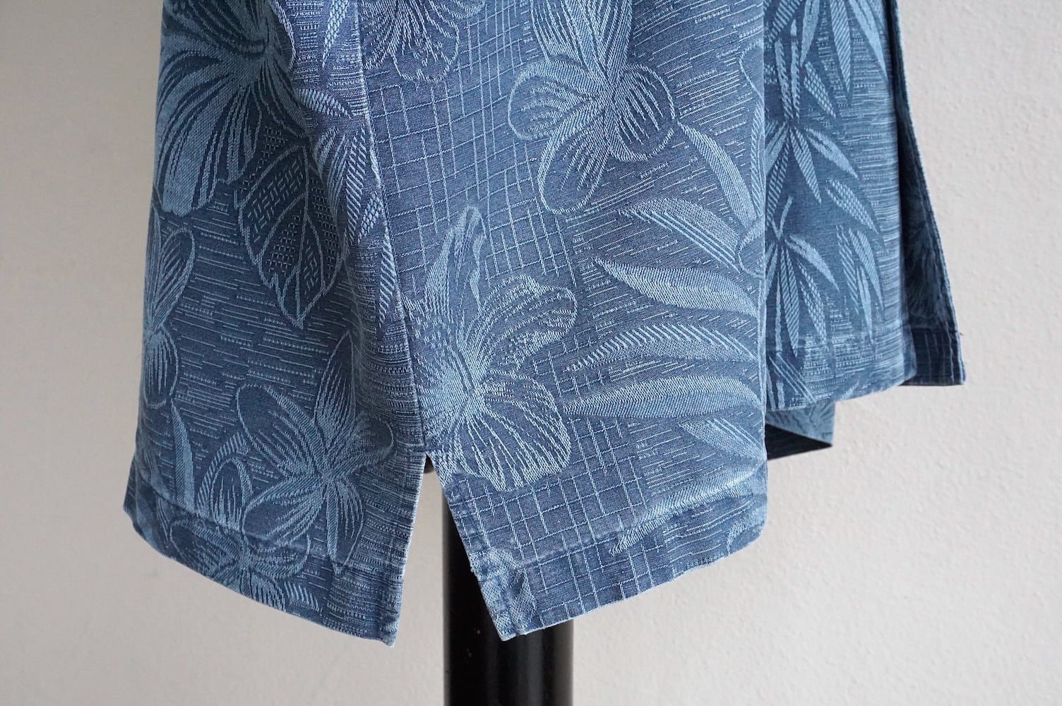 2000's〜 [Jamaica Jaxx] ピグメントダイ×ジャカード織 S/S シルクリゾートシャツ インディゴブルー 実寸(XXL程度) ボタニカルパターン ハワイアン アロハ