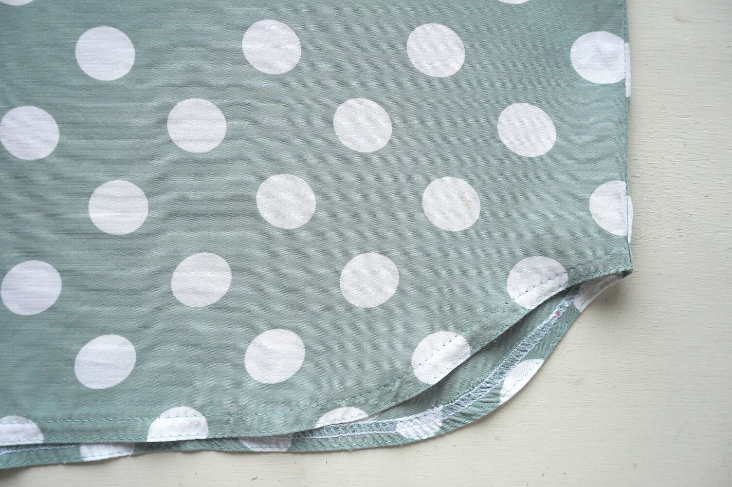 シャビーなグリーンに白ドットが可愛い、S/Sヴィスコースシャツブラウス。