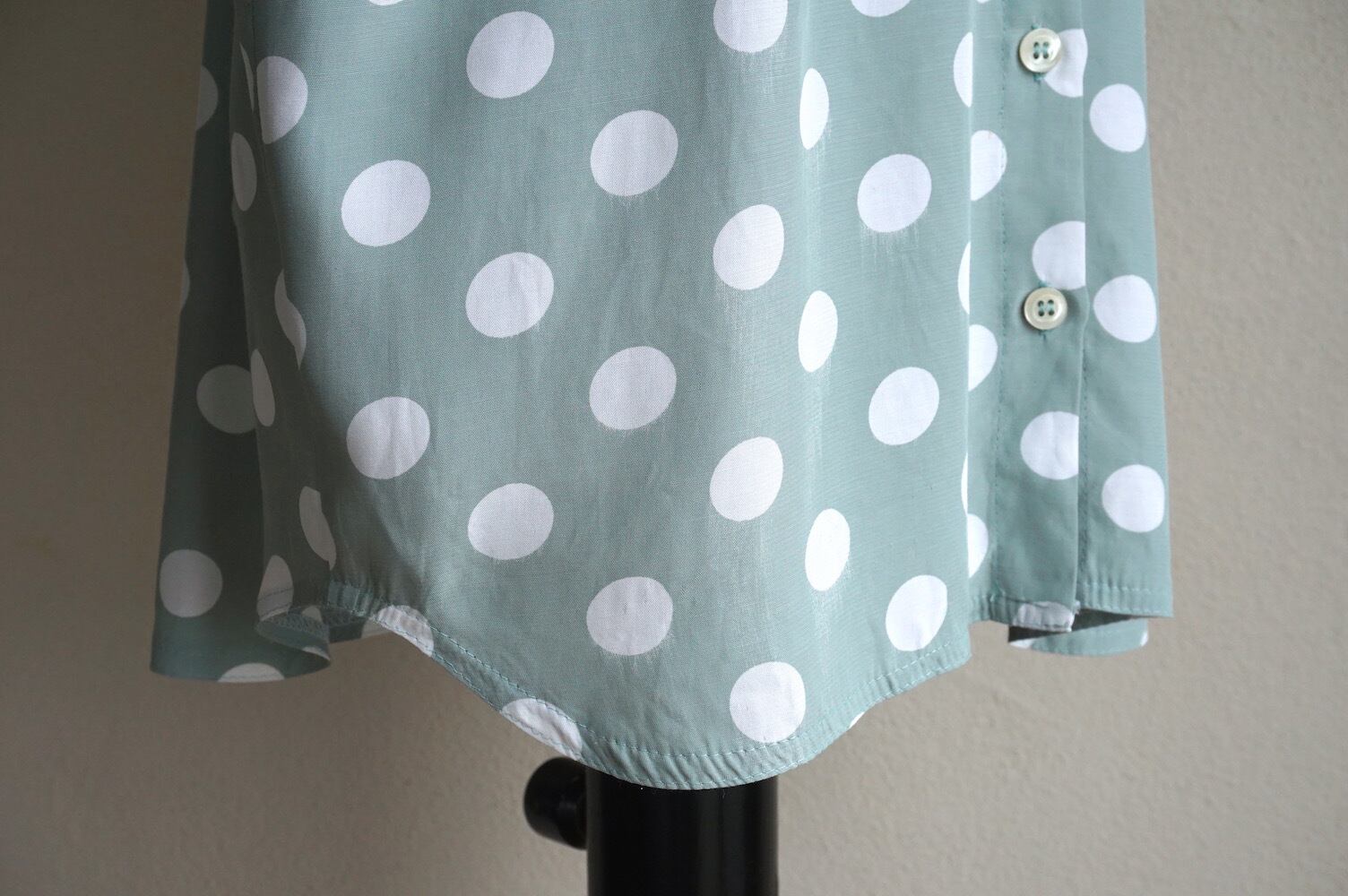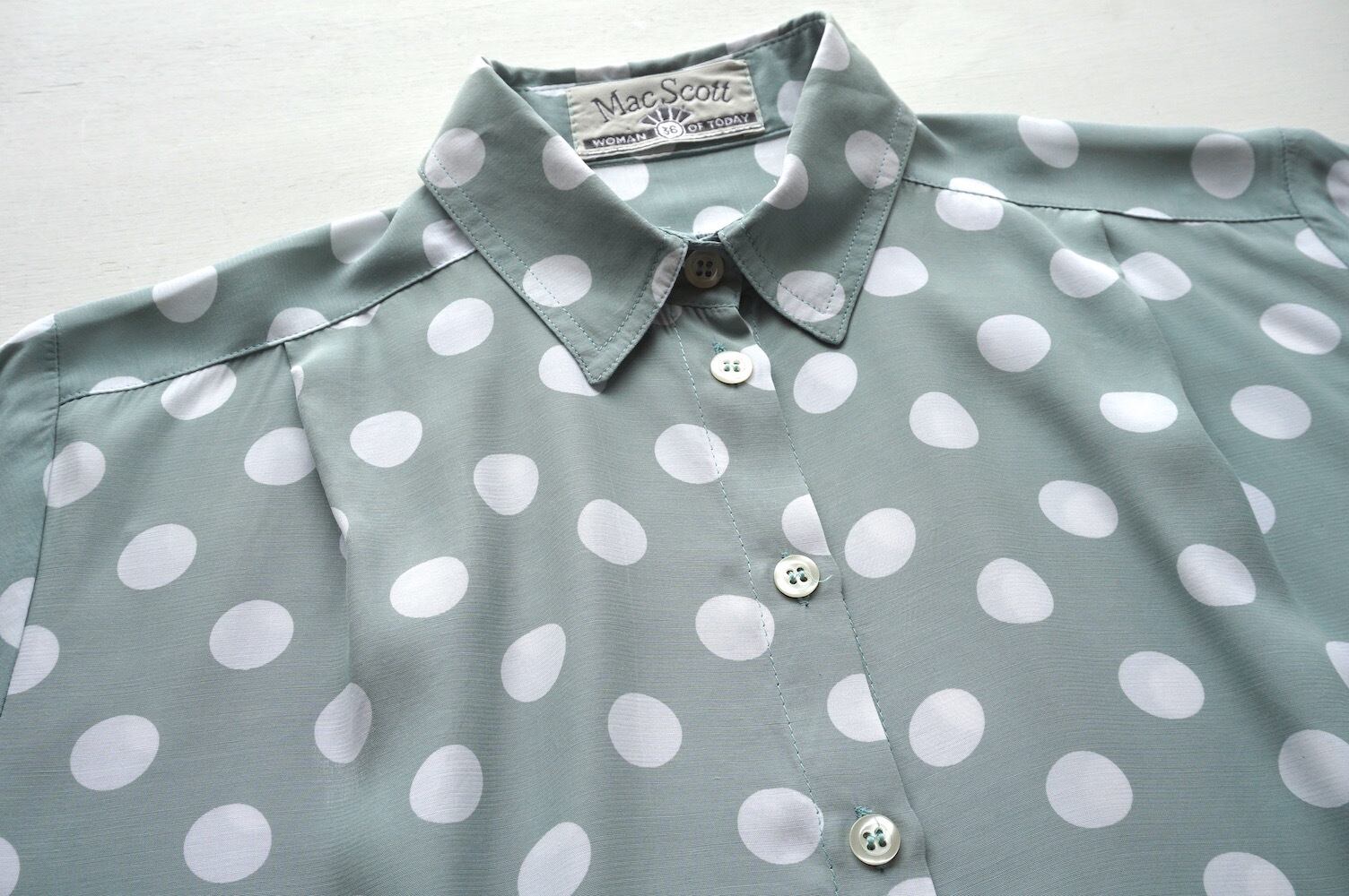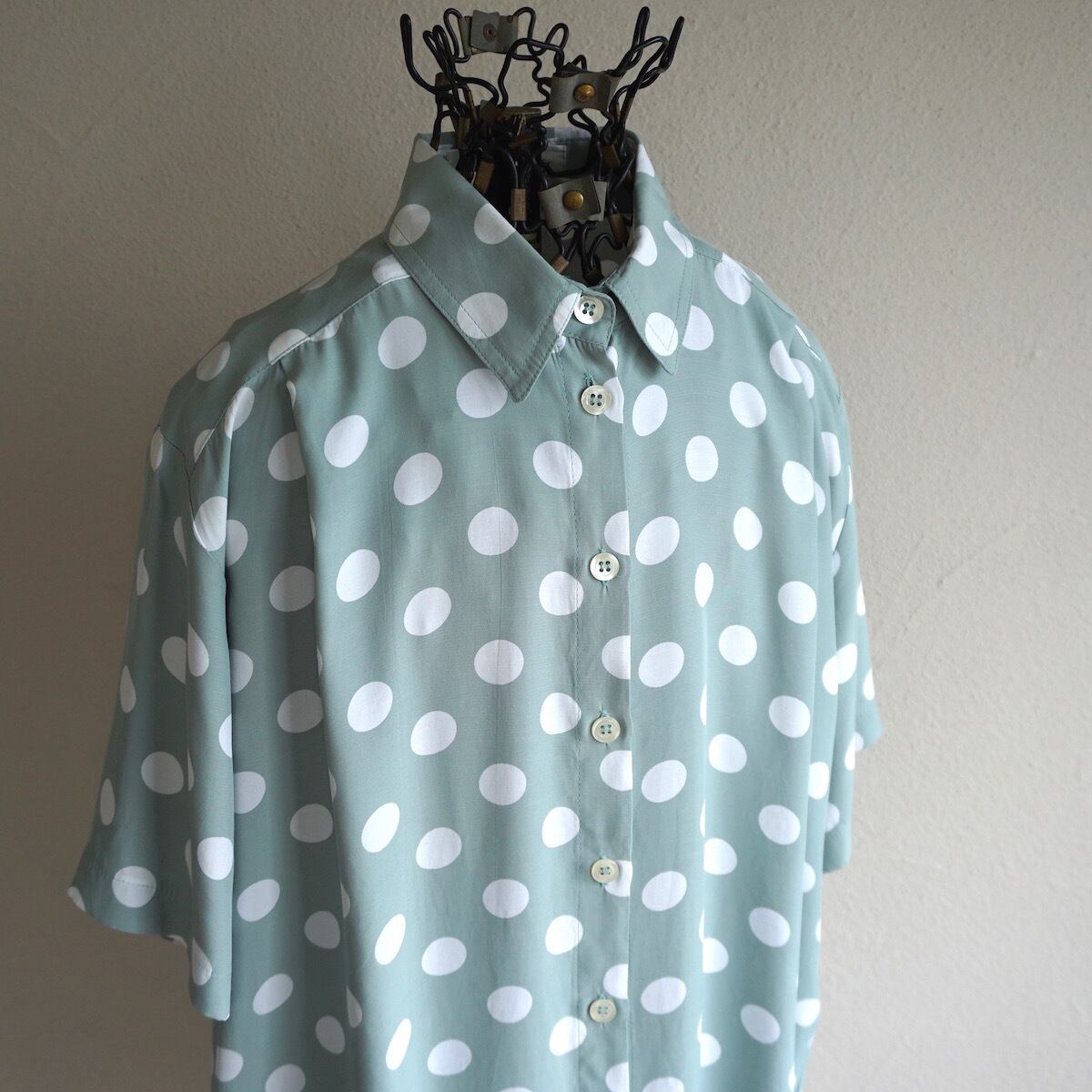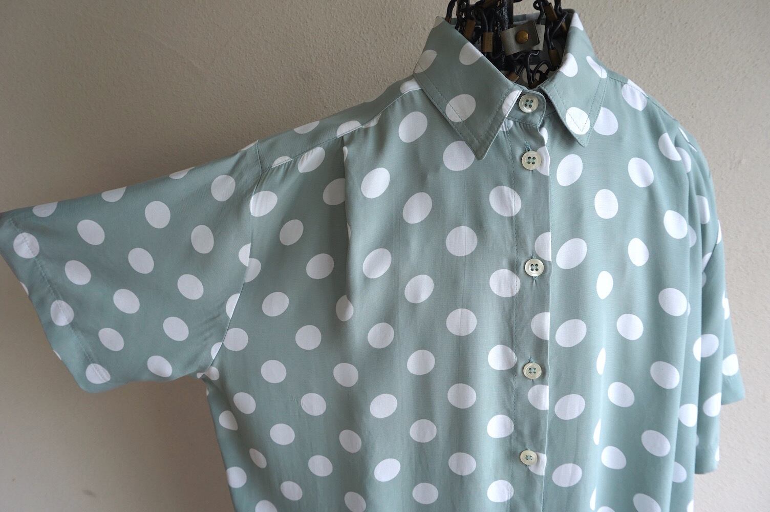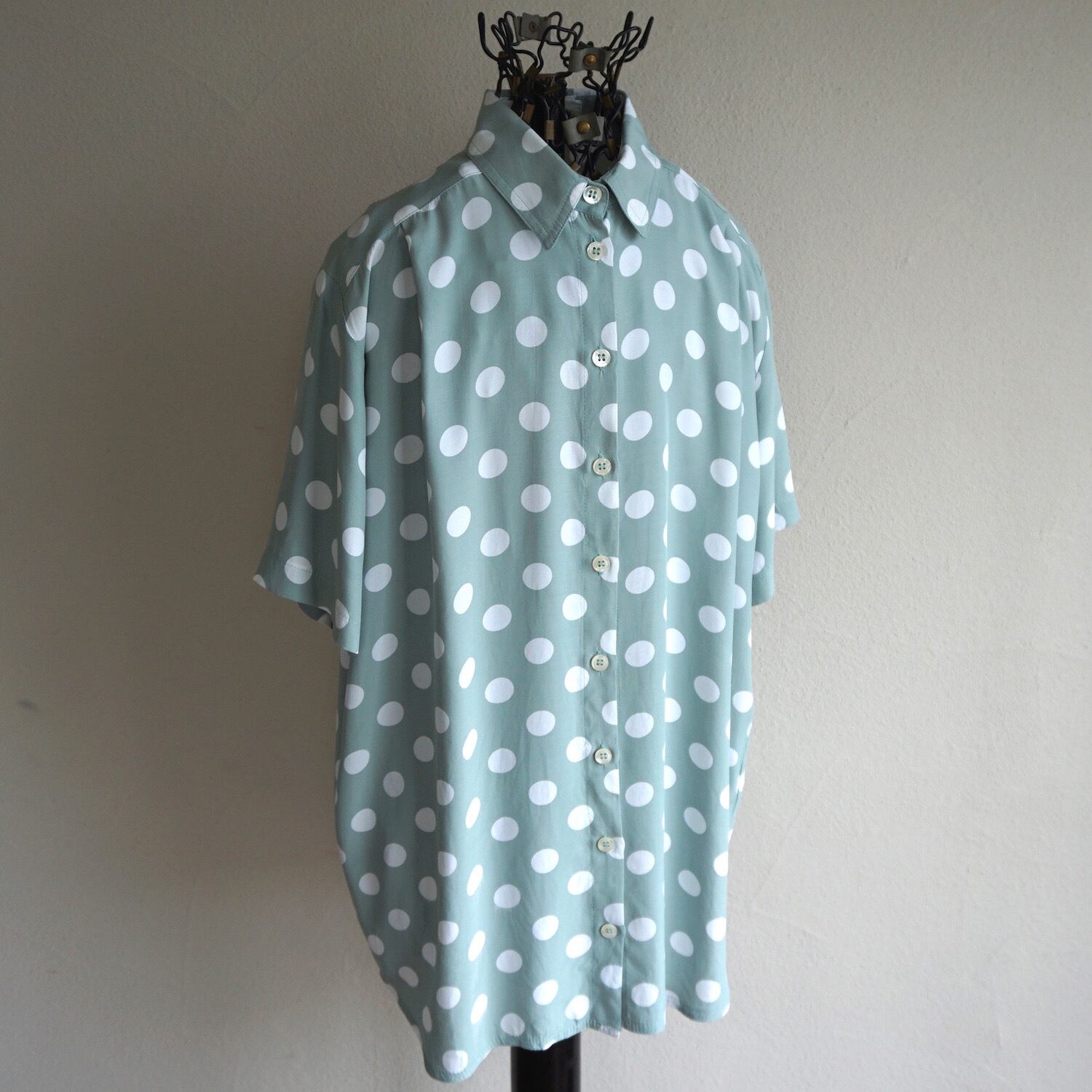 1990's [Mac Scott] ドットプリント S/S ヴィスコースシャツブラウス シャビーグリーン×ホワイト 実寸(women's L程度) ユーロ ヨーロッパ ヴィンテージ