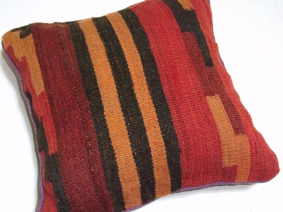 全てが1点物の手織りヴィンテージキリムを使用した温かみのある柄のクッションカバーに、