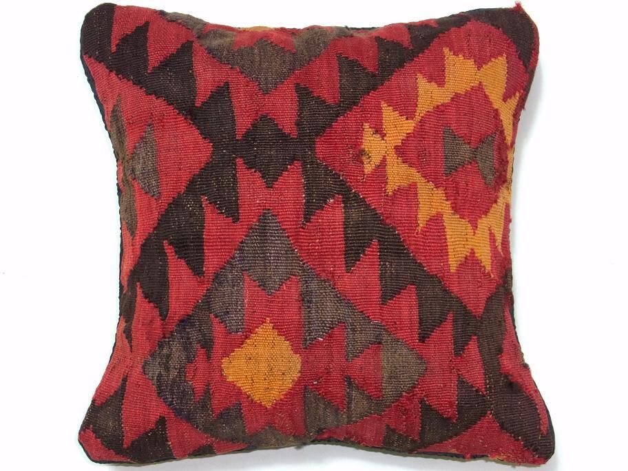 全てが1点物の手織りヴィンテージキリムを使用した温かみのある柄のクッションカバーに、