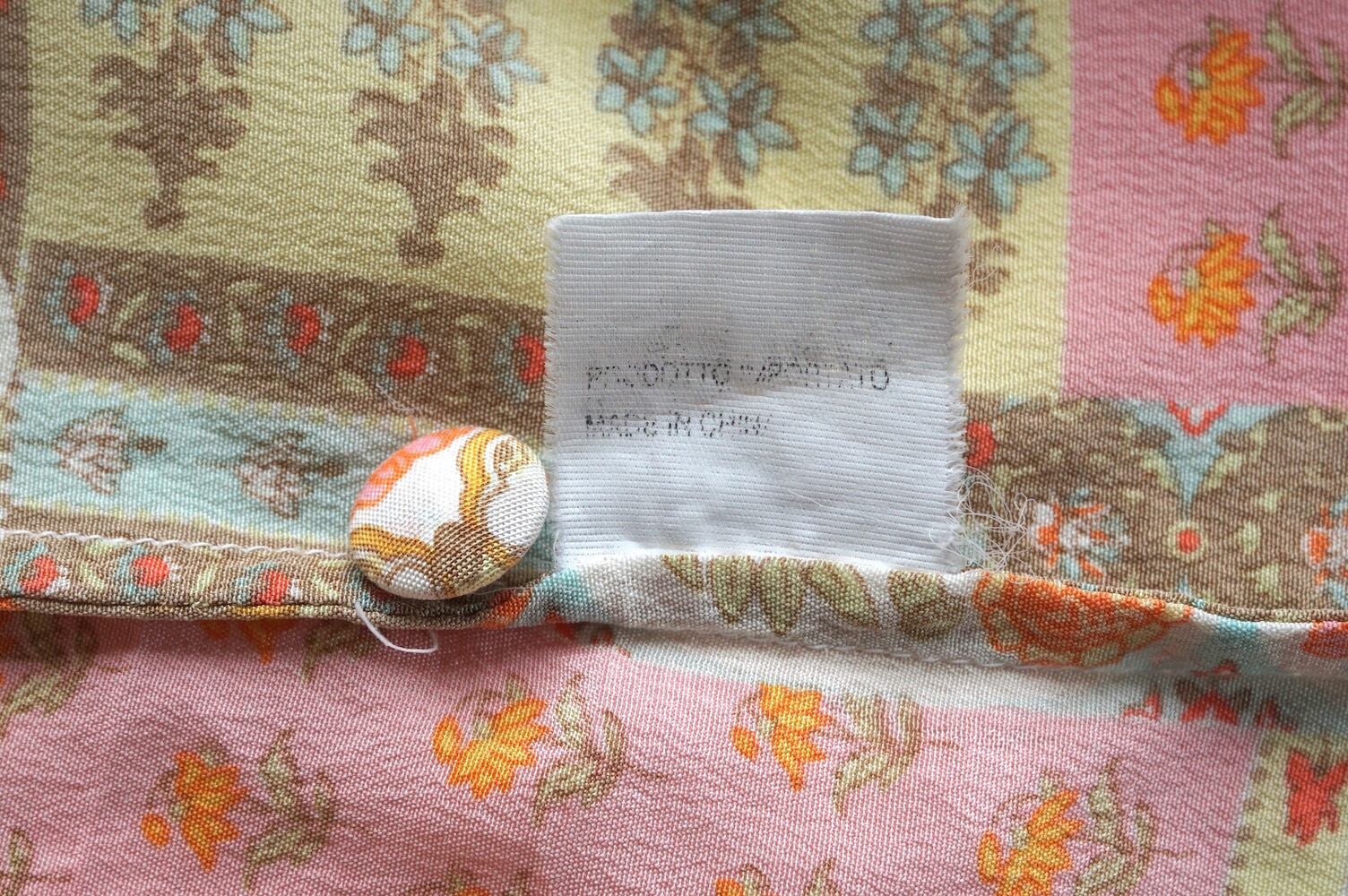 1990's [Karel] 100%シルク オープンカラー&ワイドボックスシルエット S/S シャツブラウス 実寸(women's L程度) ダマスク調フローラルプリント ヴィンテージ