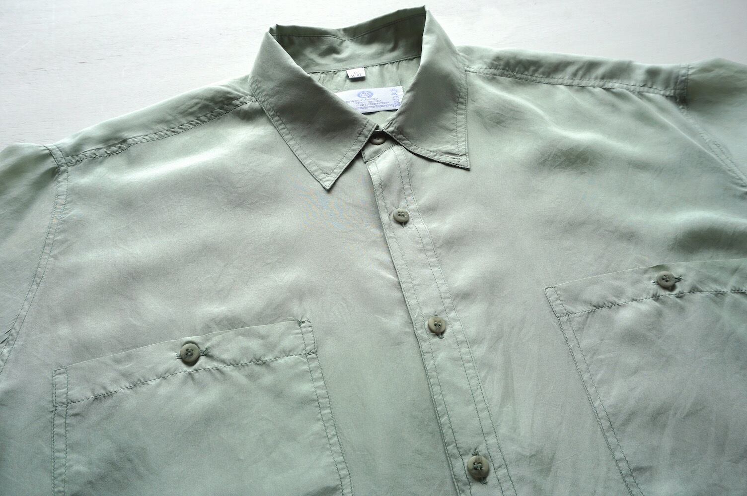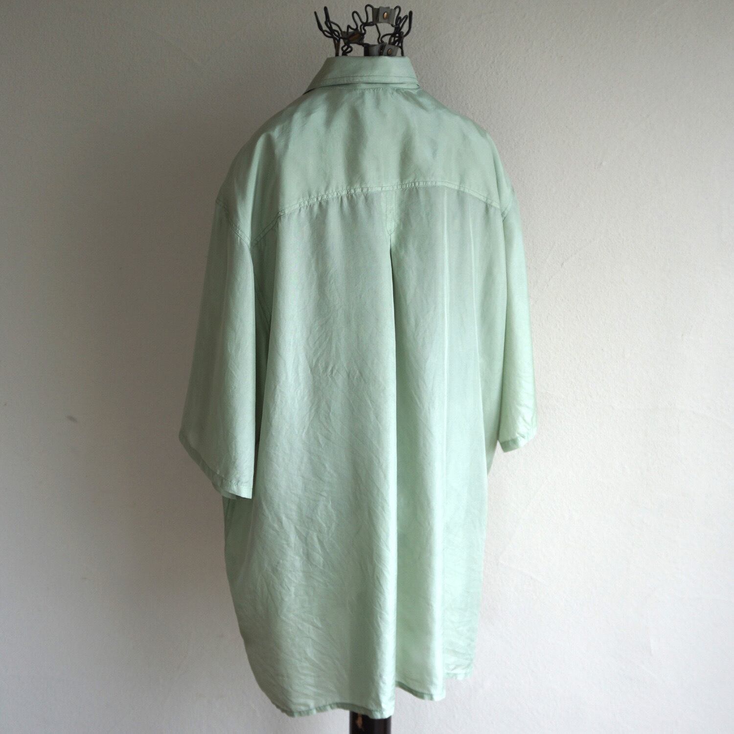 1990's [NEW FAST] S/S シルクシャツ 無地 アイスグリーン 表記(L) ヴィンテージ