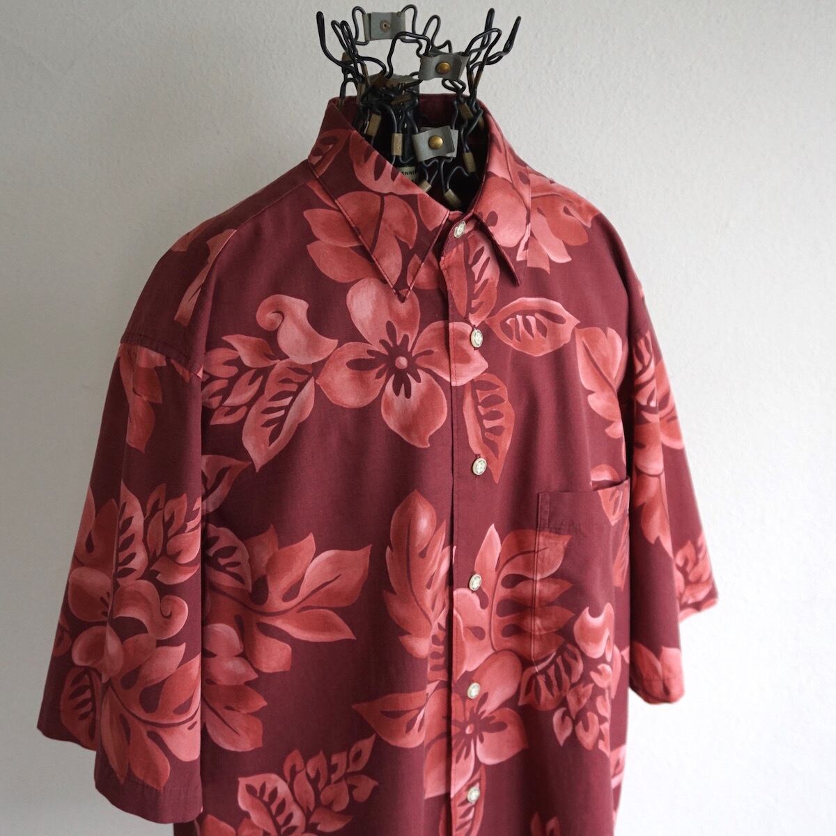 1980's〜90's [reyn spooner] ダイヤモンドヘッドタグ S/S ハワイアンシャツ ガーネット 表記(S) レインスプーナー アロハ ヴィンテージ