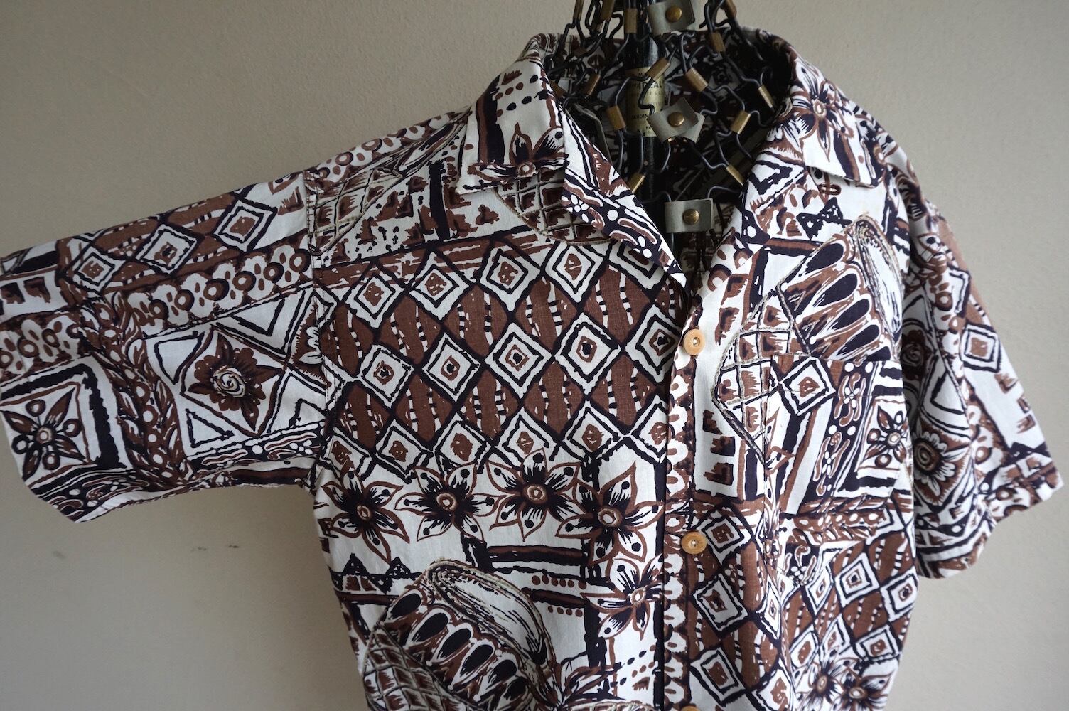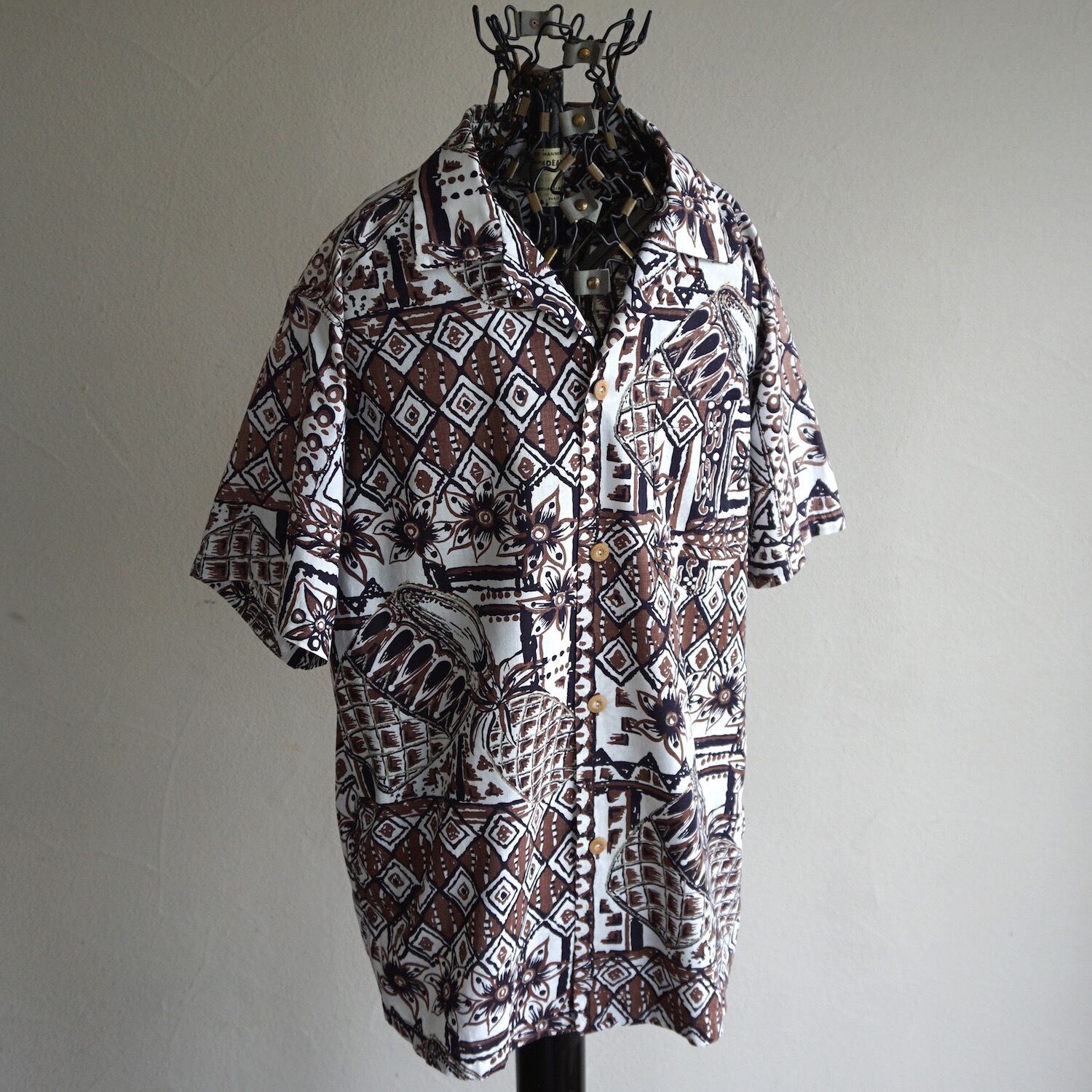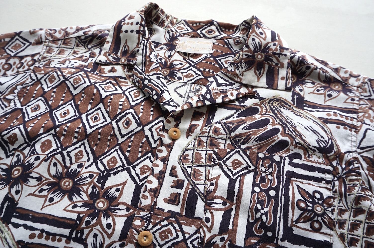 バティックの様なハワイアンモチーフプリントが雰囲気の良い、S/Sハワイアンシャツ。