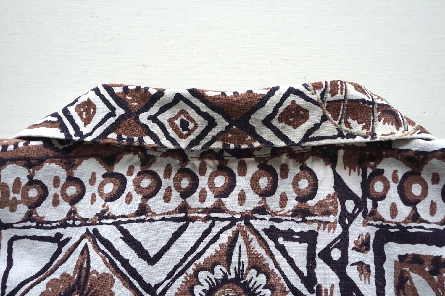 1960's [ROYAL HAWAIIAN] S/S ハワイアンシャツ バンブーボタン ホワイト×ブラウン/ブラック 実寸(men's L程度) ロイヤルハワイアン アロハ ヴィンテージ