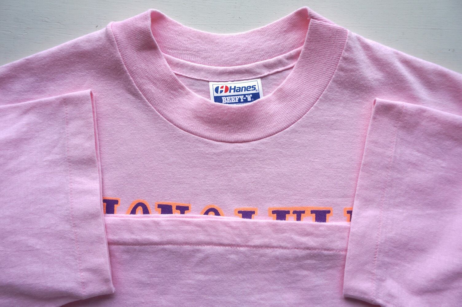 1990's USA製 [Hanes] '90 ホノルルマラソン プリントTシャツ ベビーピンク 表記(S) ヴィンテージ
