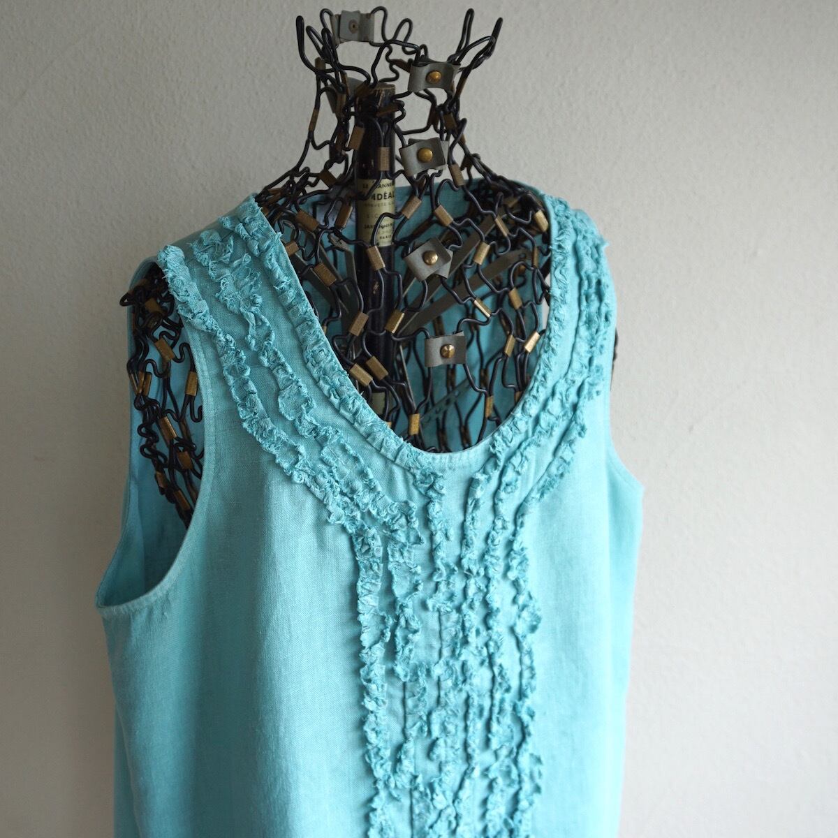 フロントのデザインが可愛い、スリーブレスカットソー。