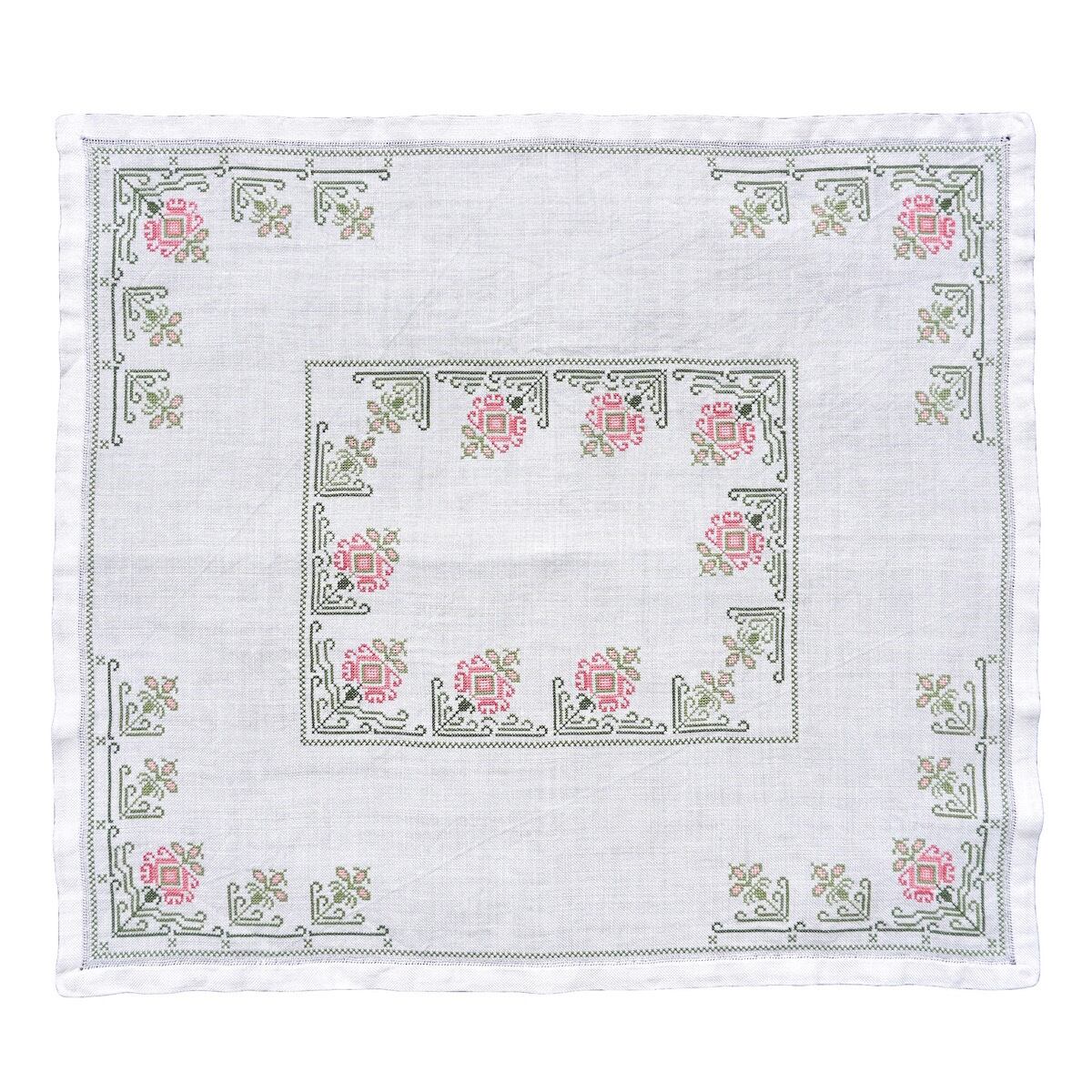 ヴィンテージ クロスステッチ リネンファブリック ホワイト 実寸(約77cm×69cm) 刺繍 エンブロイダリー テーブルクロス ユーロ ヨーロッパ アンティーク