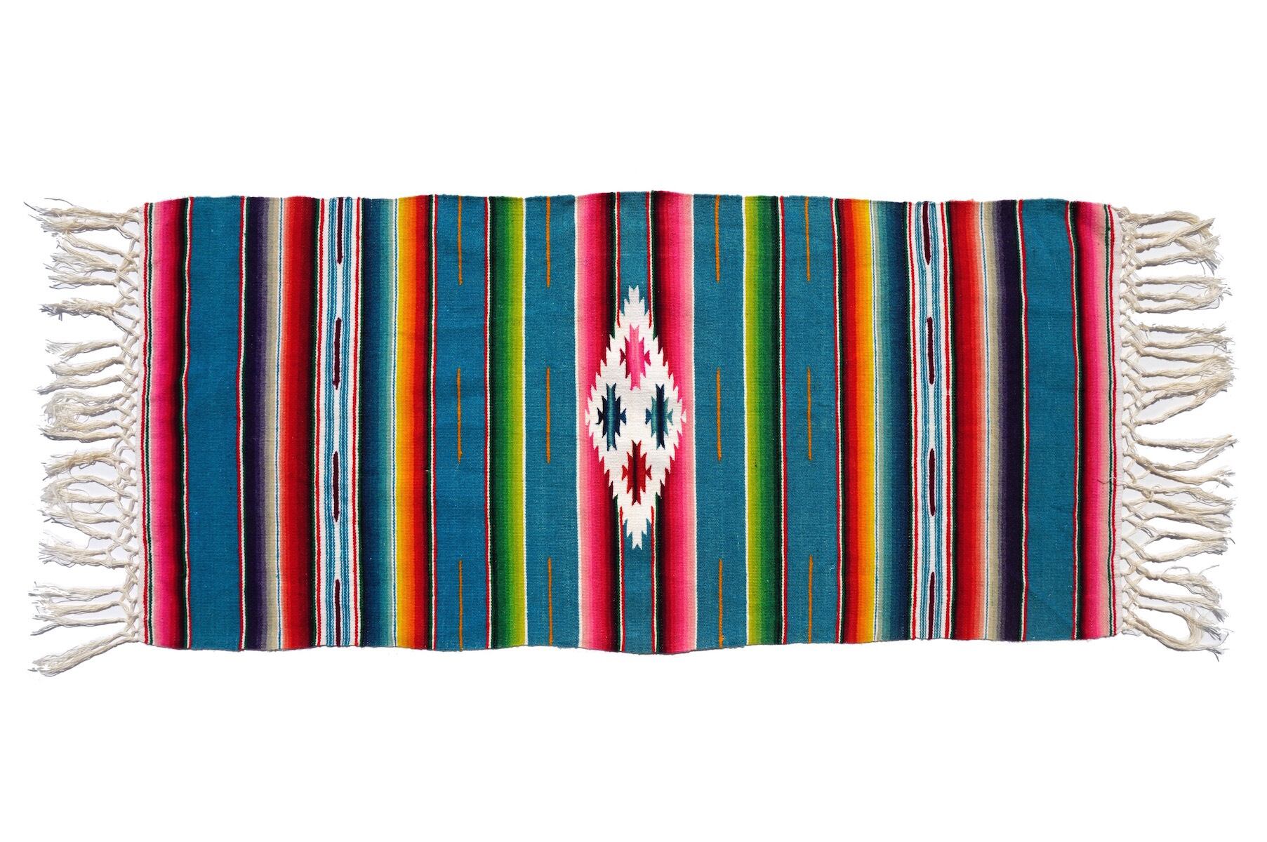 1950's〜60's ヴィンテージ メキシカンラグ サラペ ターコイズブルー系ネイティヴパターン 実寸(約77.5cm×36cm) サティーロ インディアン オールド