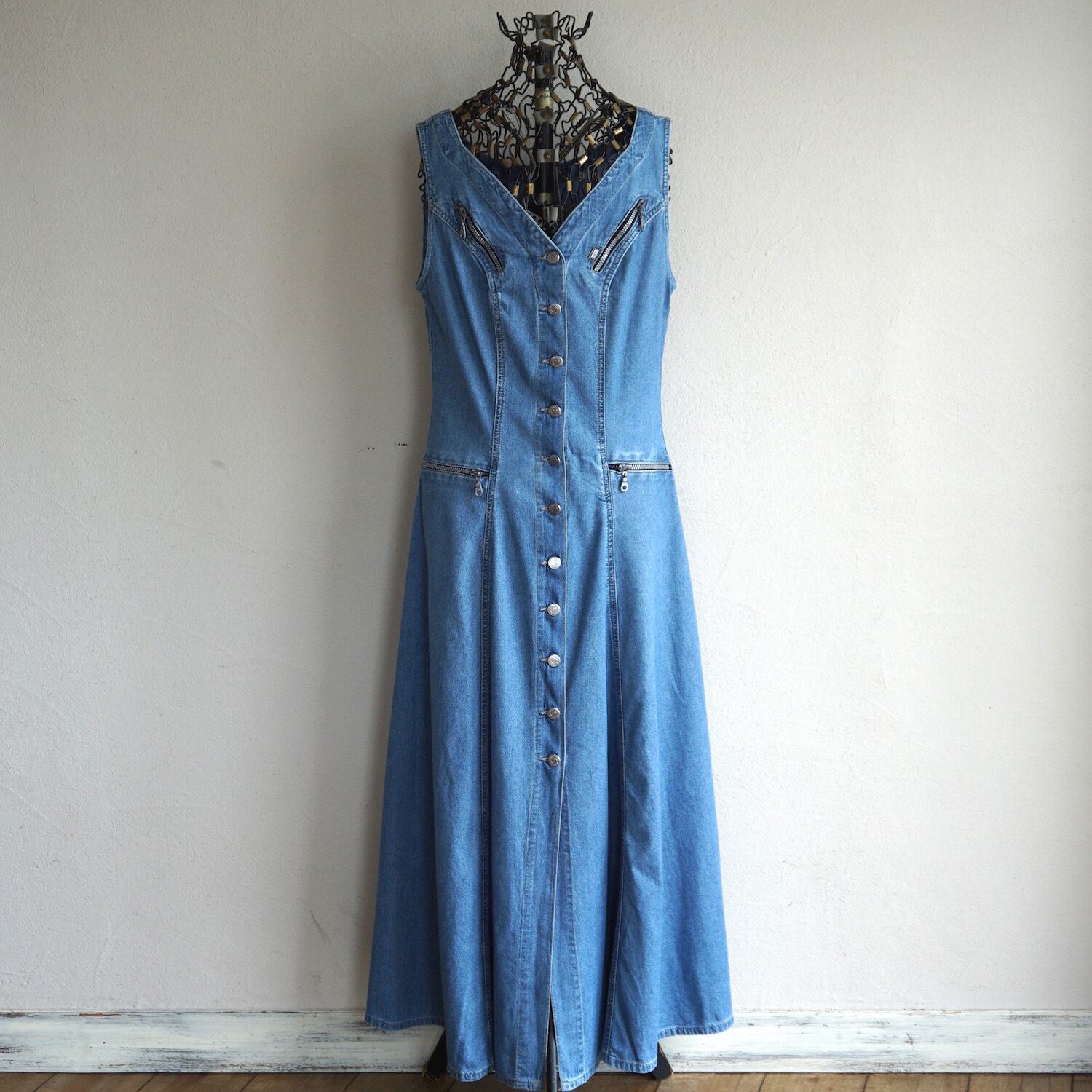 2000's [BANDOLLI] スリーブレスマキシデニムドレス フルオープン 表記(women's M) ワンピース Y2K ヴィンテージ