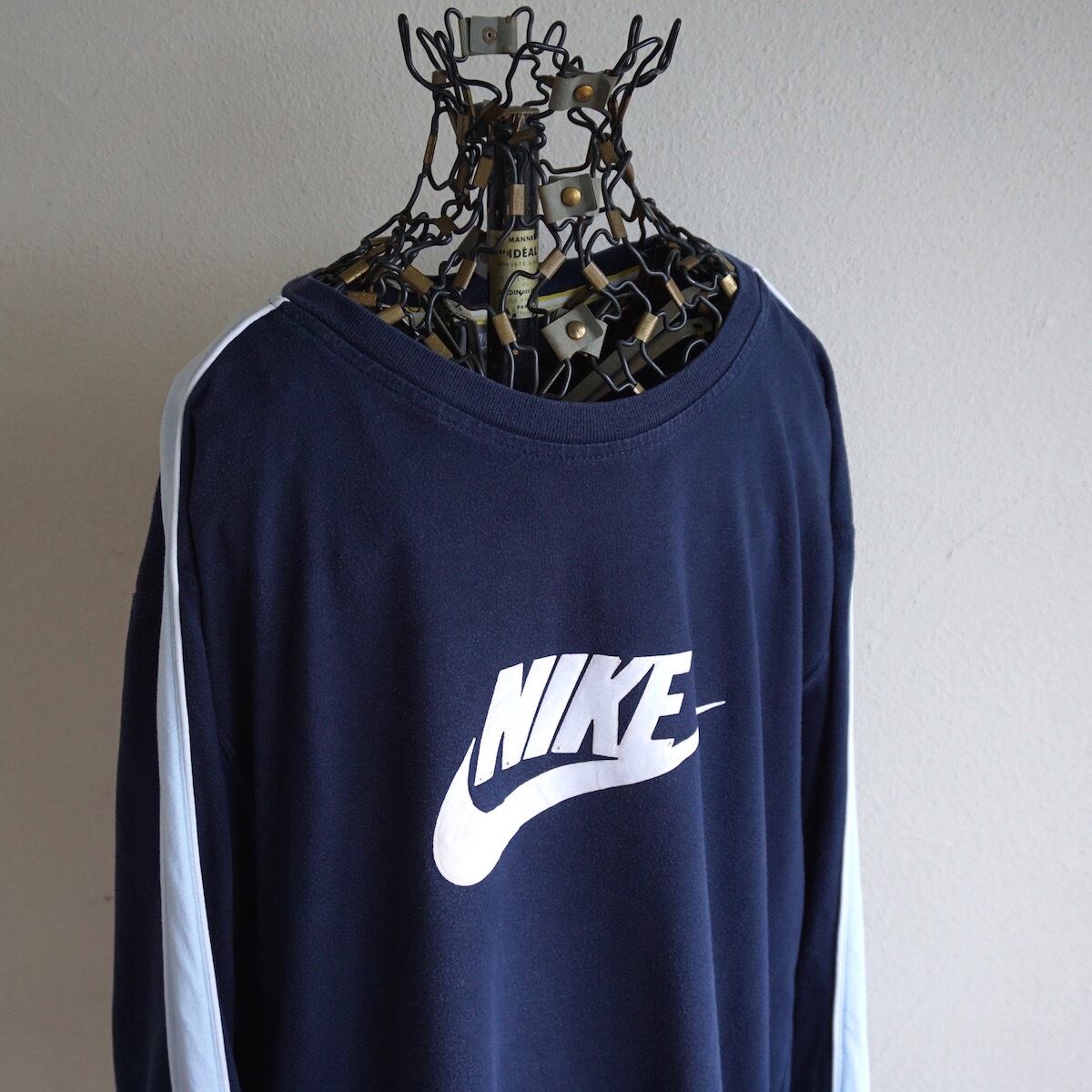 2000's [NIKE] ショルダー/アームラインデザイン L/S Tシャツ ネイビー 表記(XL) ロンT ナイキ Y2K ヴィンテージ